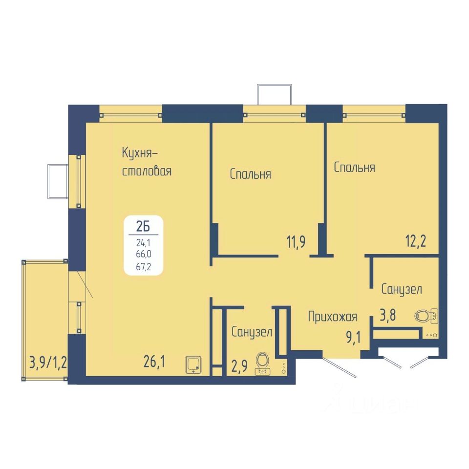 Общая площадь67,2 м2