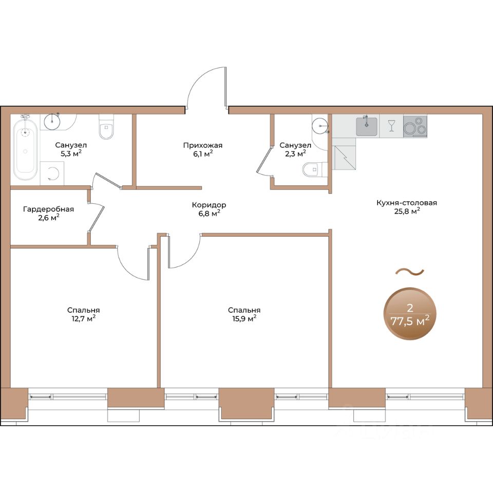 продам 2-к, Партизана Железняка, 35а/116 275 000 ₽