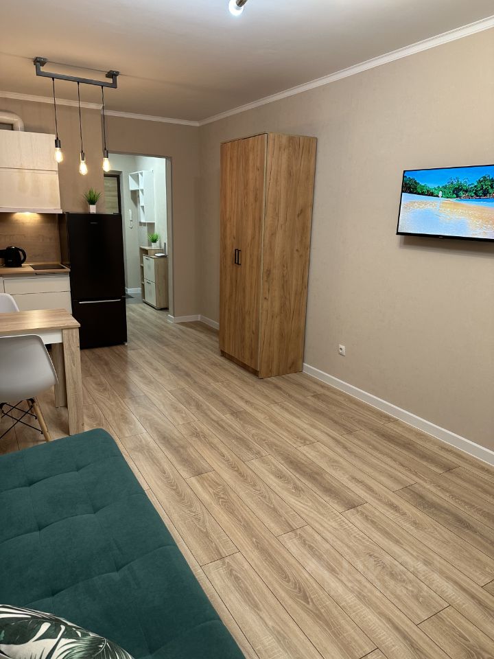 Продам студию. В квартире остается все необходимое для жизни/сдачи в аренду (стиральная машина, кухонный гарнитур с встроенными варочной панелью и вытяжкой, холодильник, телевизор, диван, шкаф, стол со стульями, шкафы в прихожей). Ремонт соответствует фото, делался с душой. Рядом конечная остановка автобусов. В доме есть все необходимое: супермаркеты, аптеки, парикмахерские, ВБ, озон и пр. Огромный балкон с панорамными окнами. Шикарный вид из окна. Последний этаж. Квартира теплая. Обременение 1,7 млн. Продажа через безопасную сделку от Сбербанка. Вся сумма в договоре. Торга нет. Собственник. Риэлторов просьба не беспокоить.