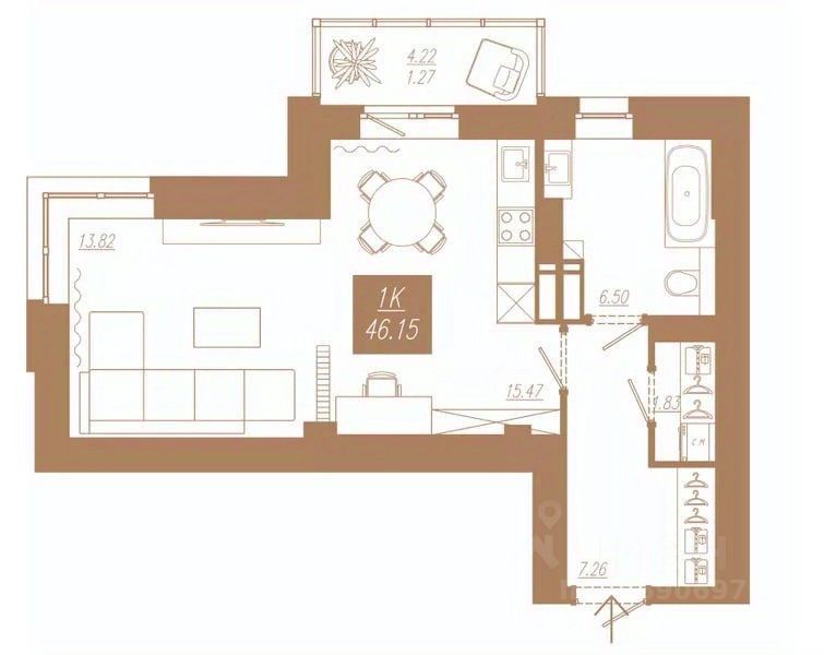 Продаётся 1-комнатная квартира в строящемся доме (Дом 3), срок сдачи: II-кв. 2028, общей площадью 46.15 кв.м., на 14 этаже. Новый жилой комплекс ''АйвазовSKY'' от группы компаний ''Ментал-Плюс'' расположен по адресу: г. Красноярск, по ул. 3-я Краснодарская.