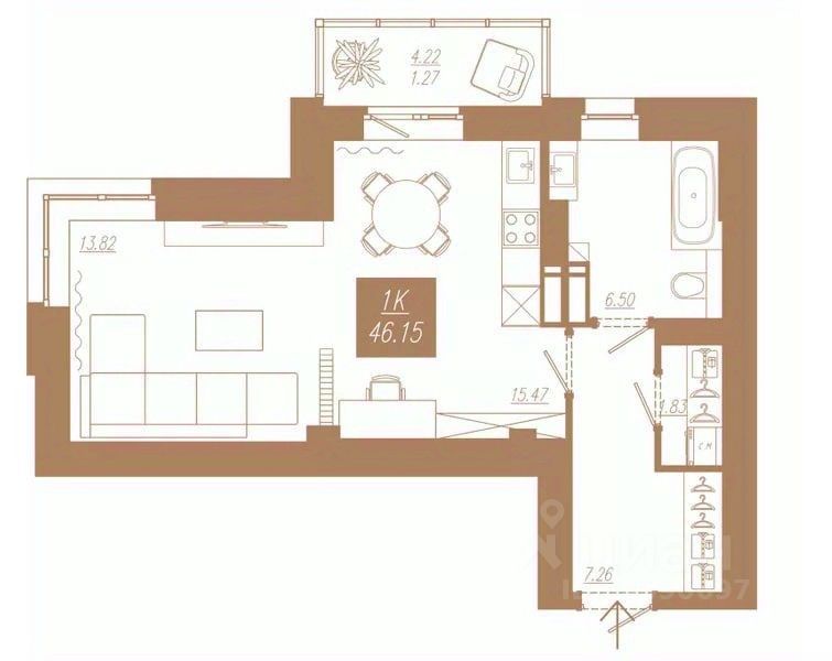 Продаётся 1-комнатная квартира в строящемся доме (Дом 3), срок сдачи: II-кв. 2028, общей площадью 46.15 кв.м., на 15 этаже. Новый жилой комплекс ''АйвазовSKY'' от группы компаний ''Ментал-Плюс'' расположен по адресу: г. Красноярск, по ул. 3-я Краснодарская.