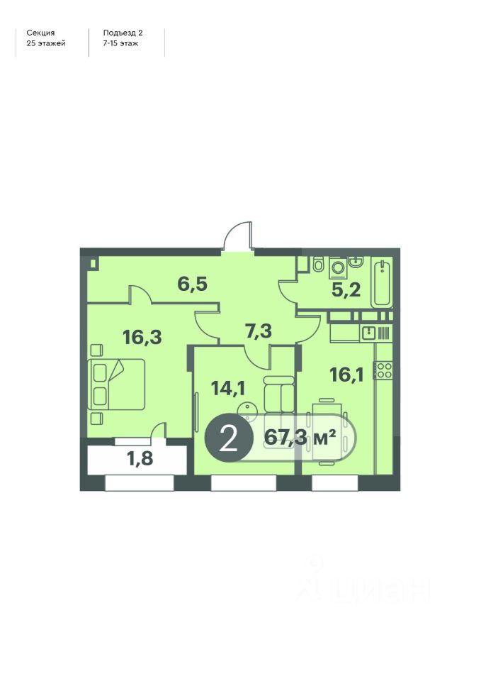 Продаётся 2-комнатная квартира в строящемся доме (Дом 1), срок сдачи: II-кв. 2026, общей площадью 67.3 кв.м., на 14 этаже. Новый жилой комплекс ''Три Клёна'' от строительной компании ''СибЛидер'' расположен по адресу: г. Красноярск, по ул. Семафорная.