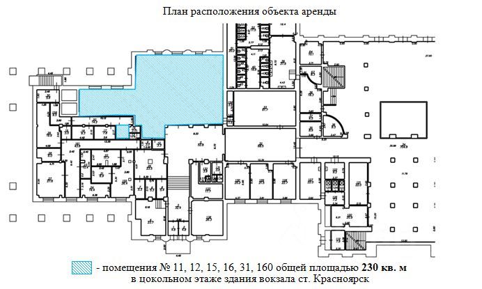 ОАО РЖД предлагает в аренду нежилые помещения общей площадью 230 кв. м в городе Красноярск.