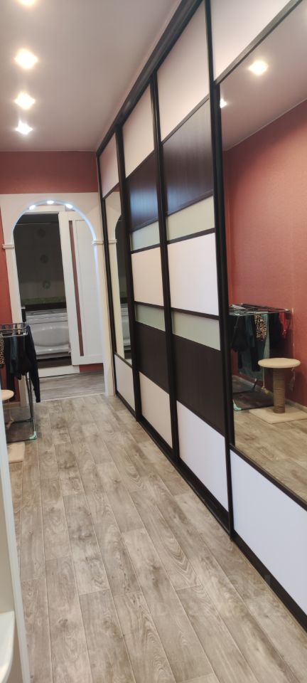 Продается отличная квартира, сделан ремонт, заменены радиаторы,окна пластиковые ПВХ, балкон застеклен. Установлена качественная входная дверь. Во всех комнатах натяжные потолки. Частично остается встроенная мебель. Есть кладовая с полками и местом для хранения верхней одежды.