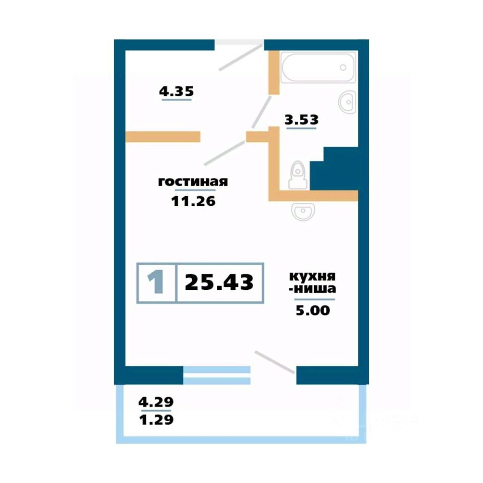 Продаётся 1-комнатная квартира в строящемся доме (Дом 12), срок сдачи: IV-кв. 2027, общей площадью 25.43 кв.м., на 9 этаже. Расположение, транспортная доступность Жилой комплекс ''Нанжуль-Солнечный'' - это квартал, в состав которого входит четырнадцать панельных зданий бюджетного класса высотой от 16 до 26 этажей, а также множество инфраструктурных объектов. Новостройка находится на северо-восточной окраине города, в Советском районе, на территории микрорайона Солнечный, рядом с Молодежным проспектом, улицами Соколовская, Ерофеевская, проспектом 60-летия образования СССР и Енисейским трактом. Путь от ''Нанжуль-Солнечного'' до центральной части города займет около получаса. За пять минут от комплекса можно доехать до железнодорожной станции Красноярск-Северный. Инфраструктура Собственная инфраструктура ''Нанжуль-Солнечного'' включает в себя: ФОК, взрослую и детскую поликлиники, женскую консультацию, несколько детских садов, общеобразовательную школу, а также офисы, магазины, сервисные и оздоровительные учреждения на нижних этажах и во встроенно-пристроенных помещениях. Рядом с кварталом находятся: детские сады 112, 328, 326, частный детский сад ''Сорванцы'', аква-клуб ''Утята'', детская больница 8, детская поликлиника 1, городская больница 2, родильный дом 1, почта, филиал Сбербанка, школы 144, 139, 134, рынок ''Простоквашино'', супермаркет ''Командор'', магазины ''Солнечный'', ''Березовский'', ''Ярмарка'', пансионат ''Солнечный''. За пять минут от ''Нанжуль-Солнечного'' можно доехать до инфраструктуры, расположенной около железнодорожной станции Красноярск-Северный, в микрорайоне Метростроитель: торговые центры, гипермаркеты, гастроном ''Красный Яр'', супермаркет ''Командор'', спорткомплекс ''Красноярск''. В пятнадцати минутах езды от комплекса находится микрорайон ''Взлетка'', в котором работают: крупнейшие торгово-развлекательные центры Красноярска ''Планета'' и ''Июнь'', торговые центры ''Взлетка Плаза'', Dommer, торговый комплекс ''Авиатор'', торгово-офисный комплекс ''Арбат'', гипермаркеты ''Лента'', ''Декатлон'', ''Леруа Мерлен'', международный выставочно-деловой центр ''Сибирь'', бизнес-центры ''Весна'', ''Сирус'', 30-этажный деловой центр ''Первая башня'', Институт психолого-педагогического образования, рынок ''Новая взлетка'', Енисейский рынок, ледовый дворец ''Кристалл''. Экологическая обстановка в месте расположения квартала хорошая. Комплекс находится на окраине города, поблизости от пригородных зон, лесов и озер, вдали от промышленных предприятий, на некотором расстоянии от крупных автотрасс. Надежность застройщика Жилой комплекс ''Нанжуль-Солнечный'' - это масштабный проект созданной в 1989 году красноярской компании ''Сибиряк''. Это одна из самых крупных строительных компаний Красноярска, на счету которой десятки реализованных проектов. Компания ''Сибиряк'' строит не только жилые дома, но и детские сады, больницы и спортивные объекты (в частности, она построила несколько объектов для Всемирной зимней Универсиады 2019 года). Помимо ''Нанжуль-Солнечного'' на счету компании ''