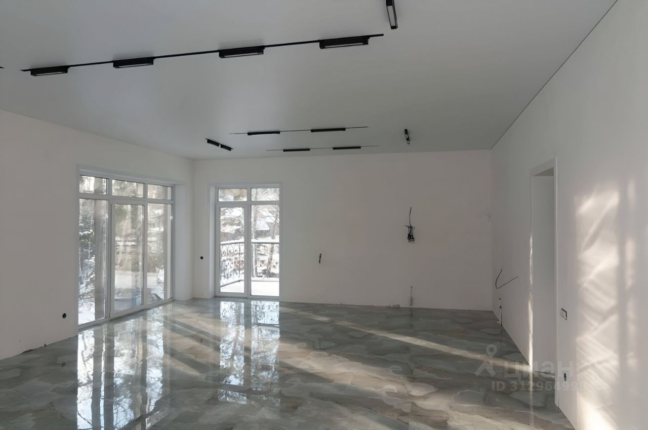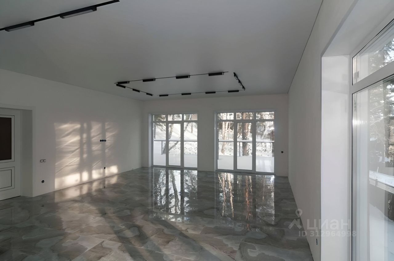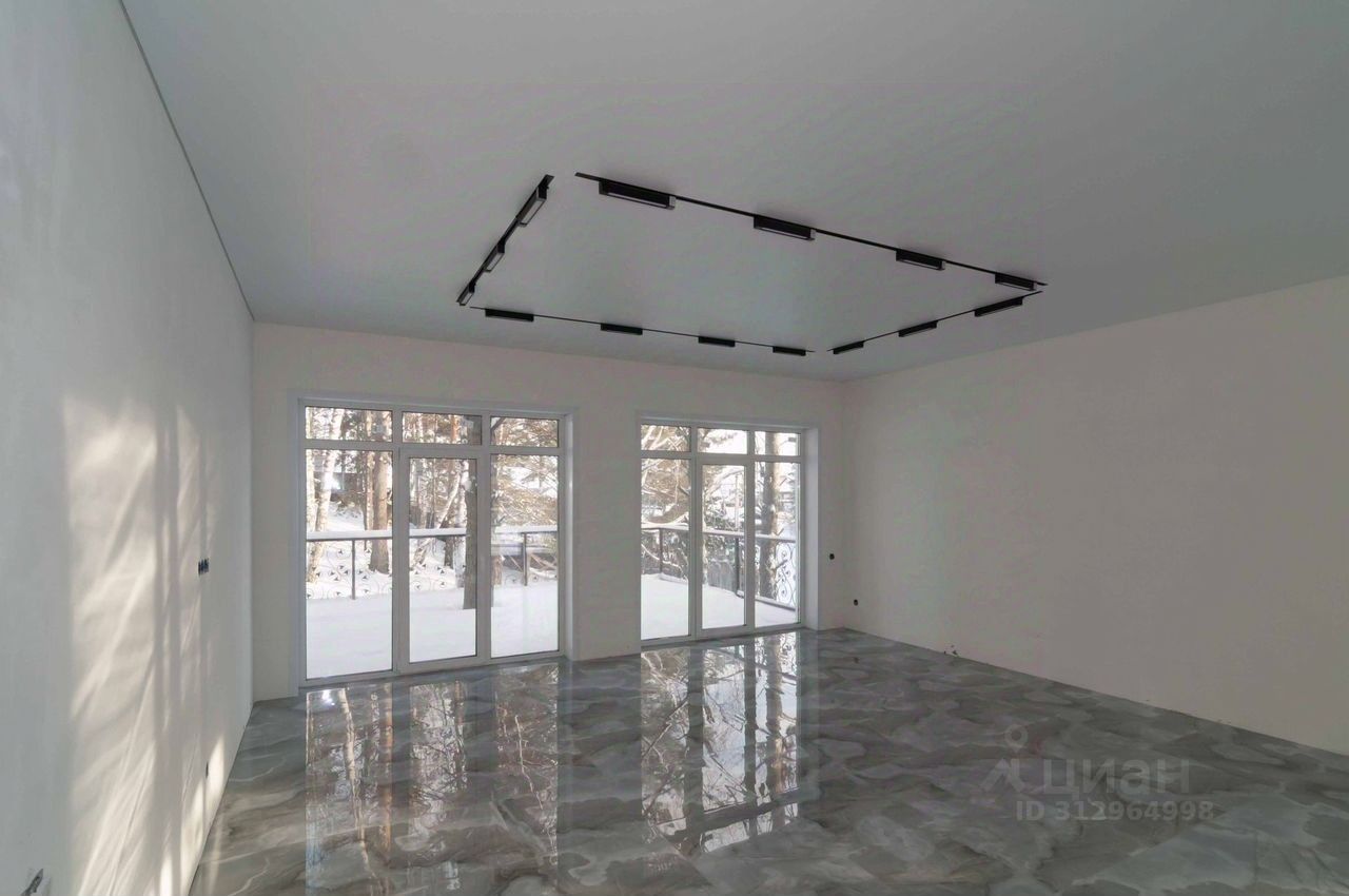 Получистовая отделка, в комнатах, на полу во всем доме керамогранит, установлены меж. комнатные двери, натяжные потолки с точечными светильниками и световыми линиями. Входная дверь с бронестеклом и терморазрывом. Окна ПВХ с ''лёгкой тонировкой'' зимой экономит тепло, летом не дает нагреваться. (мультикомфорт). Функциональная планировка 2 этаж: - большая кухня-гостиная 47,9 кв.м. с выходом на балкон (перила на фотографиях отсутствуют, но их уже устанавливают) и террасу, площадью 78 кв.м. - 3 просторные спальни с видом на лес, по 13,6 / 13,6 / 16,4 кв.м. - санузел. 1 этаж: - гараж 97 кв.м. с двумя подъемными воротами на 3-4 авто - сан.узел. - лестничная площадка. В настоящее время изготавливается лестница на 2-й этаж (скоро обновим фото).