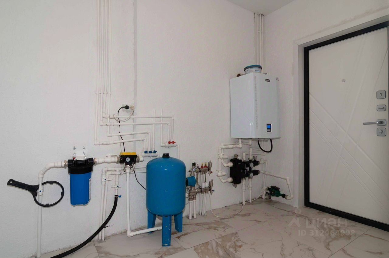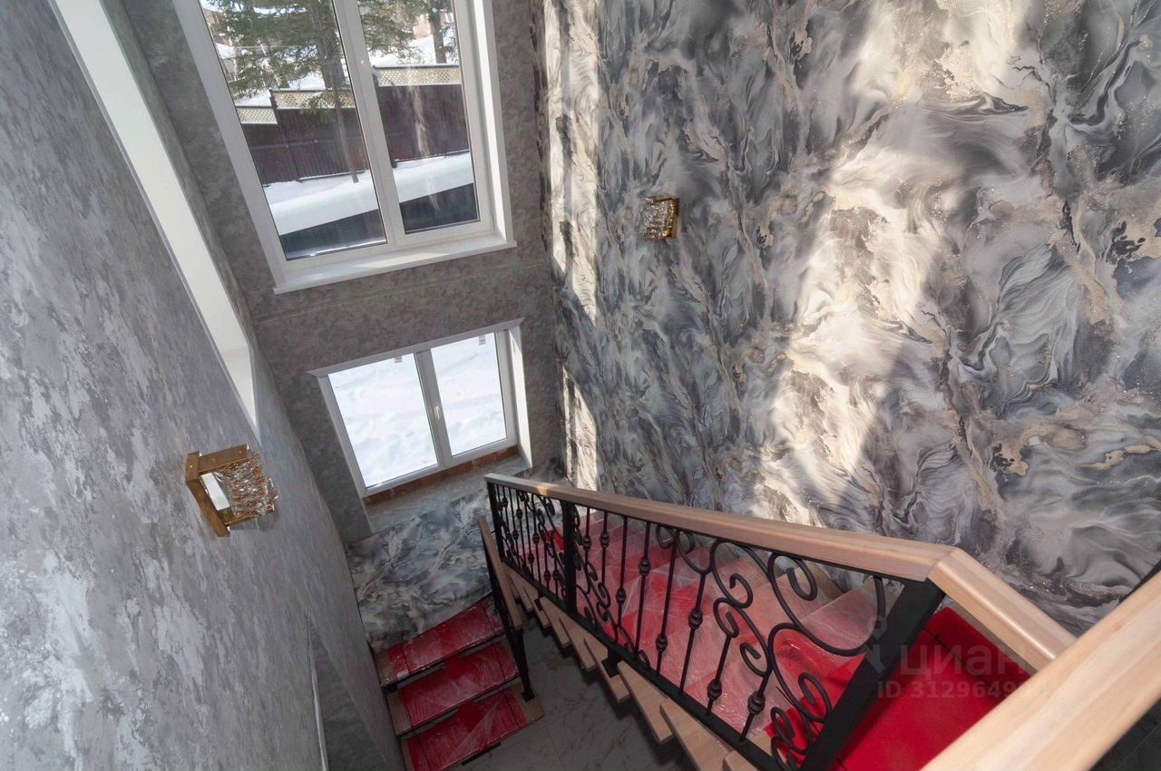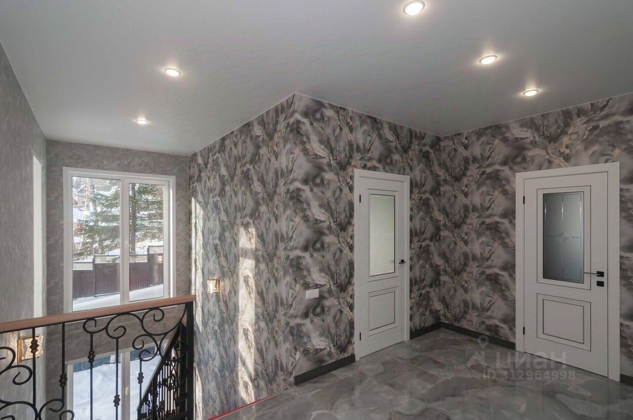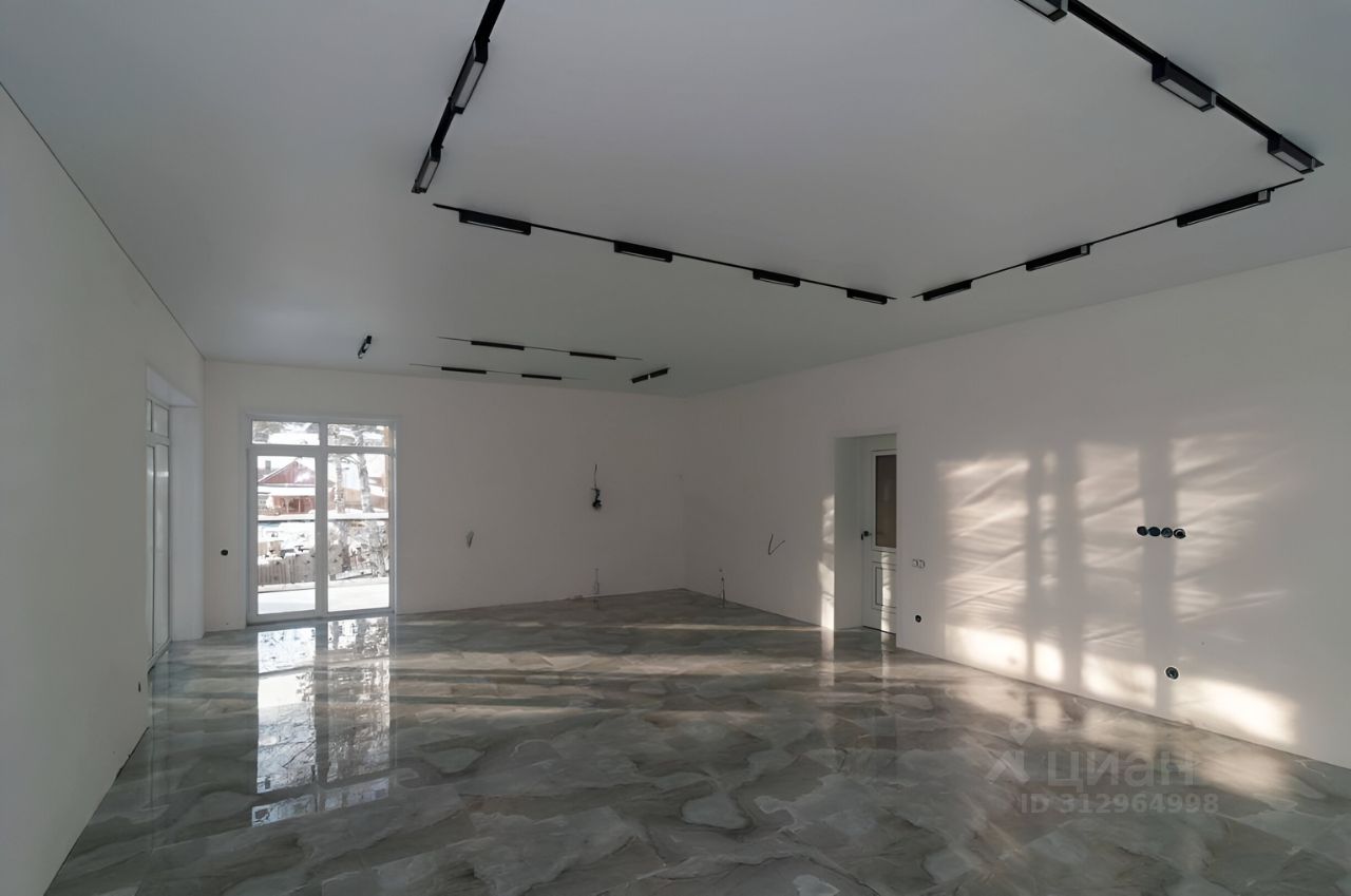 Получистовая отделка, в комнатах, на полу во всем доме керамогранит, установлены меж. комнатные двери, натяжные потолки с точечными светильниками и световыми линиями. Входная дверь с бронестеклом и терморазрывом. Окна ПВХ с ''лёгкой тонировкой'' зимой экономит тепло, летом не дает нагреваться. (мультикомфорт). Функциональная планировка 2 этаж: - большая кухня-гостиная 47,9 кв.м. с выходом на балкон (перила на фотографиях отсутствуют, но их уже устанавливают) и террасу, площадью 78 кв.м. - 3 просторные спальни с видом на лес, по 13,6 / 13,6 / 16,4 кв.м. - санузел. 1 этаж: - гараж 97 кв.м. с двумя подъемными воротами на 3-4 авто - сан.узел. - лестничная площадка. В настоящее время изготавливается лестница на 2-й этаж (скоро обновим фото).