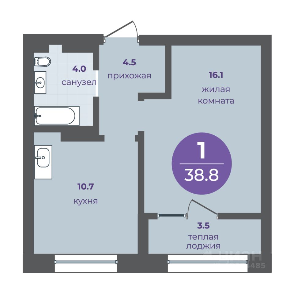 Общая площадь35,3 м2