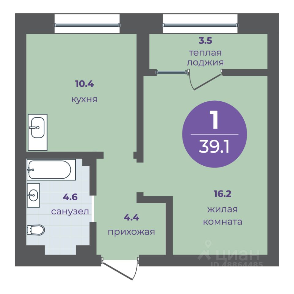 Общая площадь35,6 м2