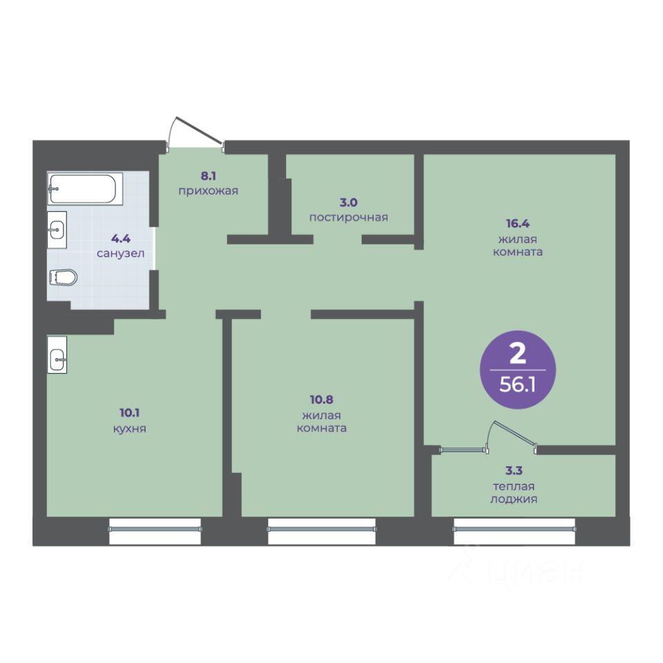 Общая площадь52,8 м2