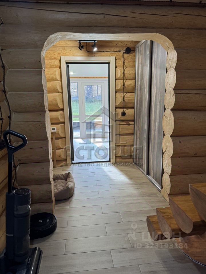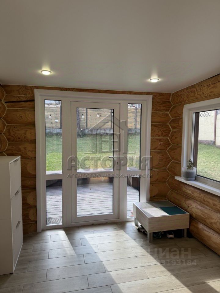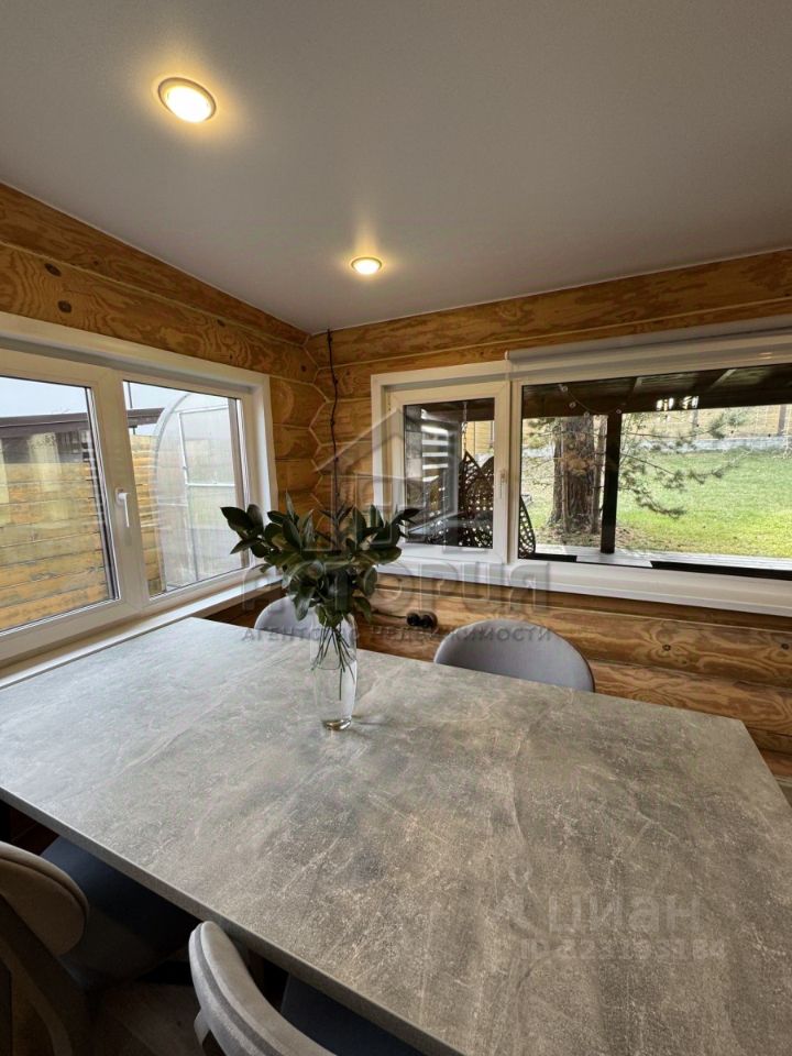 Продажа дома из бревна лиственницы, 2019 года постройки. Отличное место, не далеко от города. Район плодово-ягодной станции. Хвойный лес для прогулок в двух шагах от участка. Просторная и чистая улица. Все соседи живут на постоянной основе. До самого дома асфальтированная дорога. До города 1,5 км. и 2 минуты на авто. О доме: Дом два этажа, площадью 90 квадратов, теплый, уютный, светлый. Прекрасный микроклимат, пахнет деревом. На первом этаже расположена кухня-гостиная, прихожая и совмещенный санузел. На втором этаже большая спальня. Отопление электричеством (средний расход на электроэнергию 5 тыс. рублей в месяц), теплый пол. Скважина с питьевой водой (установлен фильтр), септик 6 кубов. Остается два шкафа, кухонный гарнитур, обеденная группа, духовой шкаф, микроволновка, вытяжка, варочная панель. К дому пристроена уютная, крытая терраса, уличная мебель остается. По периметру террасы сделана обводка из морозостойкой уличной гирлянды. Об участке: Участок 5 соток, ровный, правильной формы. На участке расположен дом, имеется хоз. постройка, теплица. Доступ к участку с двух сторон. По периметру ограждён красивым, деревянный забором на фундаменте. Установлены откатные ворота. На участке растут три вековые сосны. Площадка под автомобиль выложена брусчаткой. Очень красивое и уютное место, вблизи от города. ПОД СЕМЕЙНУЮ ИПОТЕКУ НЕ ПОДХОДИТ! БАНИ НЕТ.