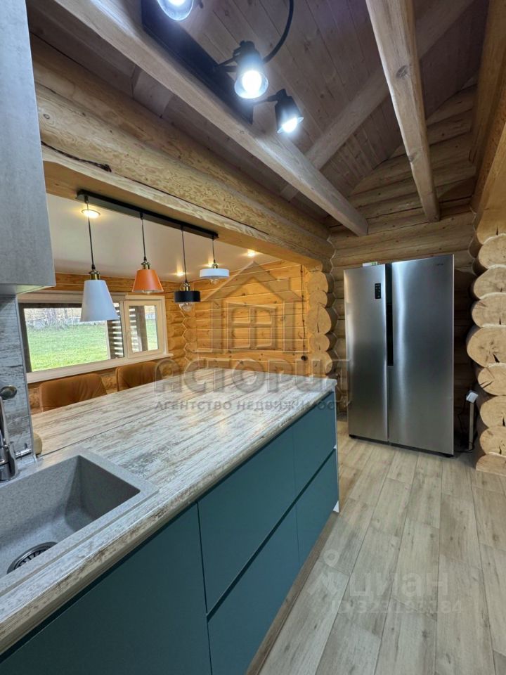 Продажа дома из бревна лиственницы, 2019 года постройки. Отличное место, не далеко от города. Район плодово-ягодной станции. Хвойный лес для прогулок в двух шагах от участка. Просторная и чистая улица. Все соседи живут на постоянной основе. До самого дома асфальтированная дорога. До города 1,5 км. и 2 минуты на авто. О доме: Дом два этажа, площадью 90 квадратов, теплый, уютный, светлый. Прекрасный микроклимат, пахнет деревом. На первом этаже расположена кухня-гостиная, прихожая и совмещенный санузел. На втором этаже большая спальня. Отопление электричеством (средний расход на электроэнергию 5 тыс. рублей в месяц), теплый пол. Скважина с питьевой водой (установлен фильтр), септик 6 кубов.
