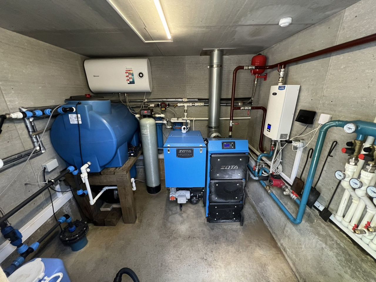 Система обогрева автономная (5 дней горения на угле) и полностью автоматическое управление со смартфона. Электро и Угольный котел Zоtа. Насосы грюнфус. Новейшие оборудование.