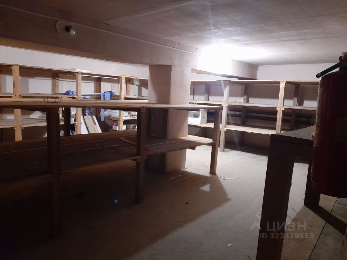 1-ый этаж разделен на 2 помещения, соединённые проёмом, каждый площадью по 136м2. Имеются 2 отдельных выхода в складские помещения, находящиеся на цокольном этаже (по 90м2 каждый).