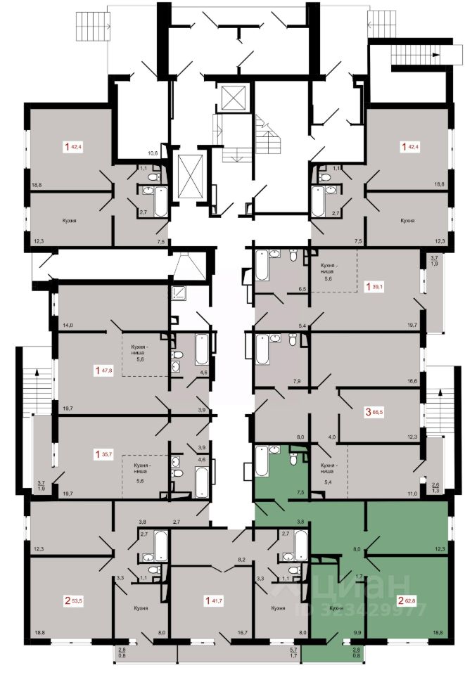 Продаётся 2-комнатная квартира в строящемся доме (Дом 7 строение 1), срок сдачи: IV-кв. 2027, общей площадью 62.8 кв.м., на 16 этаже.