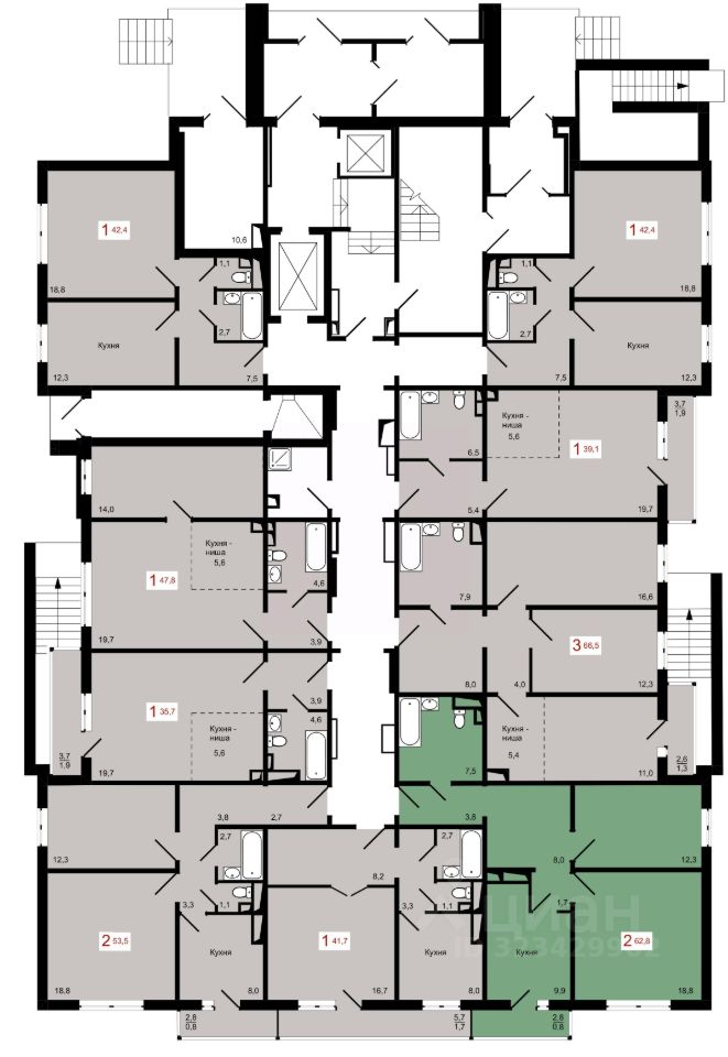 Продаётся 2-комнатная квартира в строящемся доме (Дом 7 строение 1), срок сдачи: IV-кв. 2027, общей площадью 62.8 кв.м., на 9 этаже.