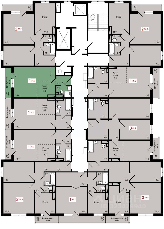 Продаётся 1-комнатная квартира в строящемся доме (Дом 7 строение 1), срок сдачи: IV-кв. 2027, общей площадью 31.9 кв.м., на 12 этаже.