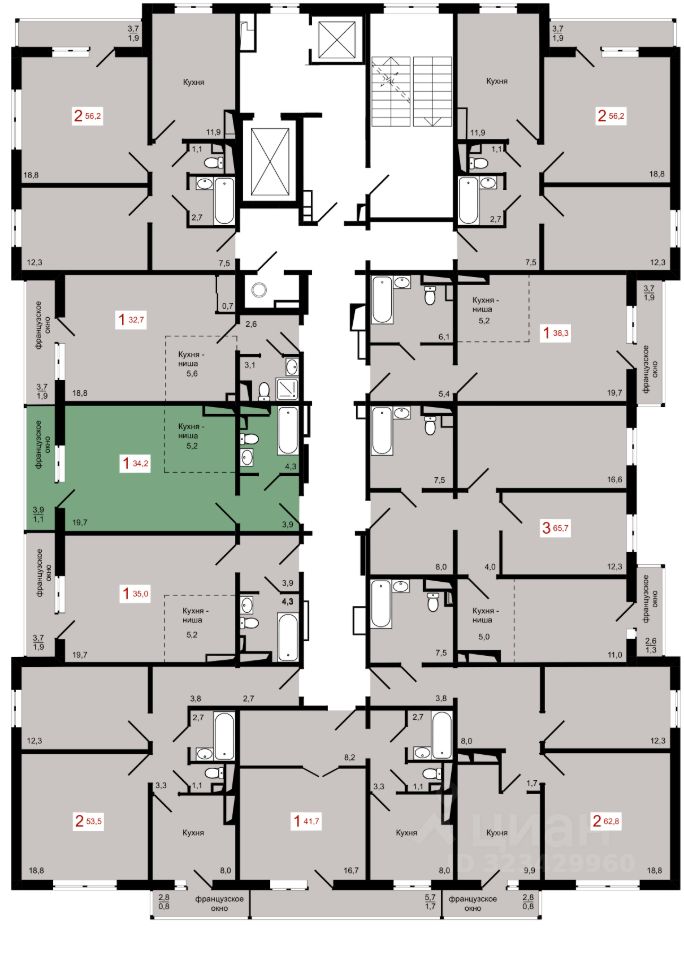 Продаётся 1-комнатная квартира в строящемся доме (Дом 7 строение 1), срок сдачи: IV-кв. 2027, общей площадью 34.2 кв.м., на 14 этаже.