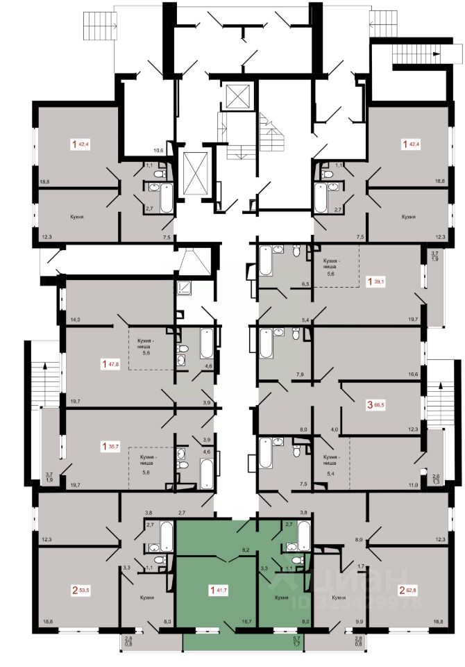 Продаётся 1-комнатная квартира в строящемся доме (Дом 7 строение 1), срок сдачи: IV-кв. 2027, общей площадью 41.7 кв.м., на 16 этаже.