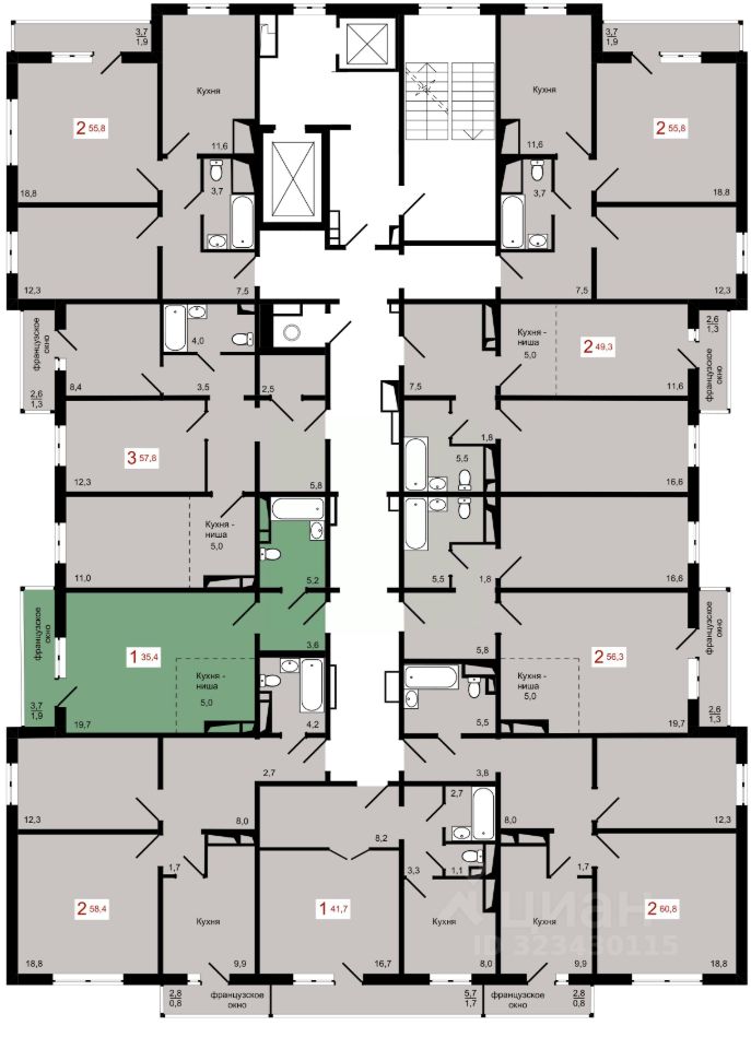 Продаётся 1-комнатная квартира в строящемся доме (Дом 7 строение 2), срок сдачи: IV-кв. 2027, общей площадью 35.4 кв.м., на 13 этаже.