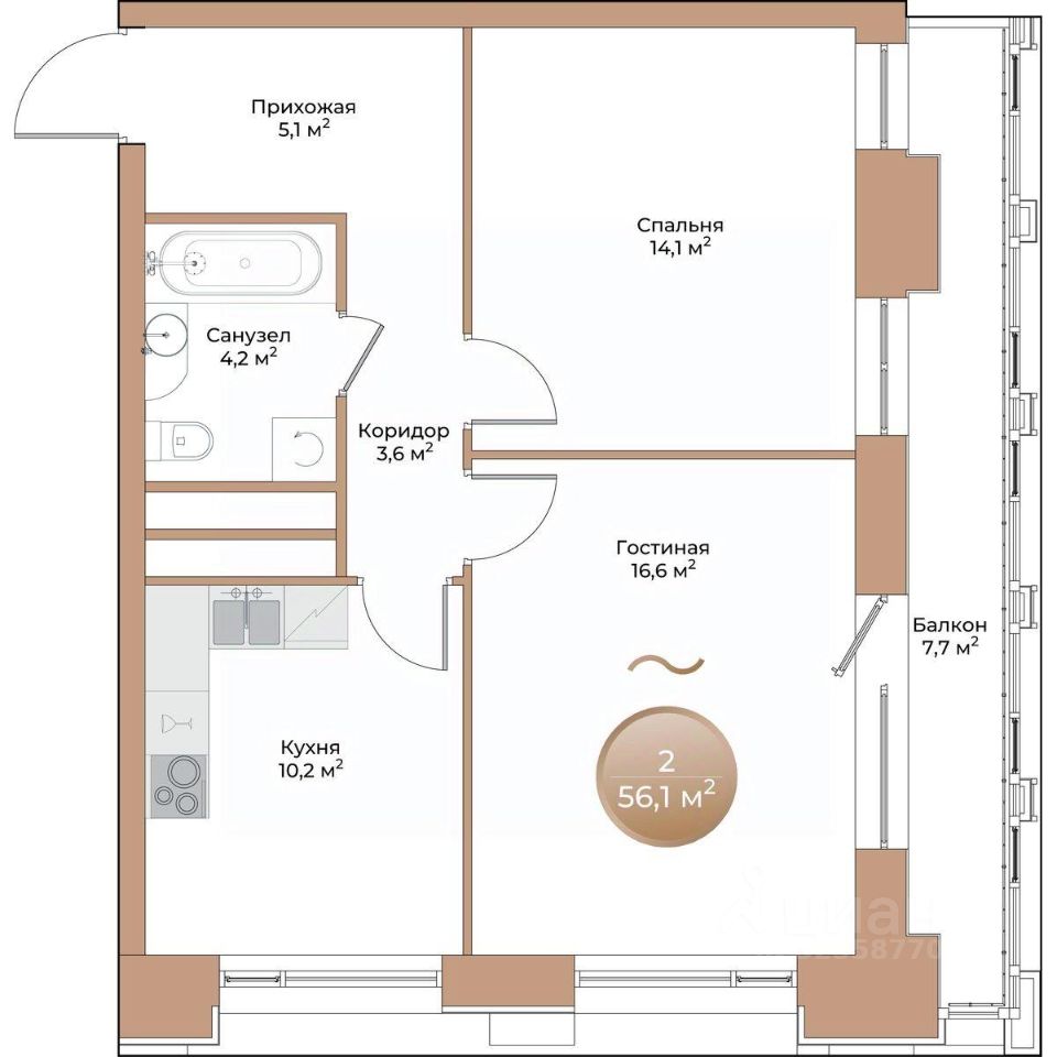 продам 2-к, Партизана Железняка, 35а/110 939 500 ₽