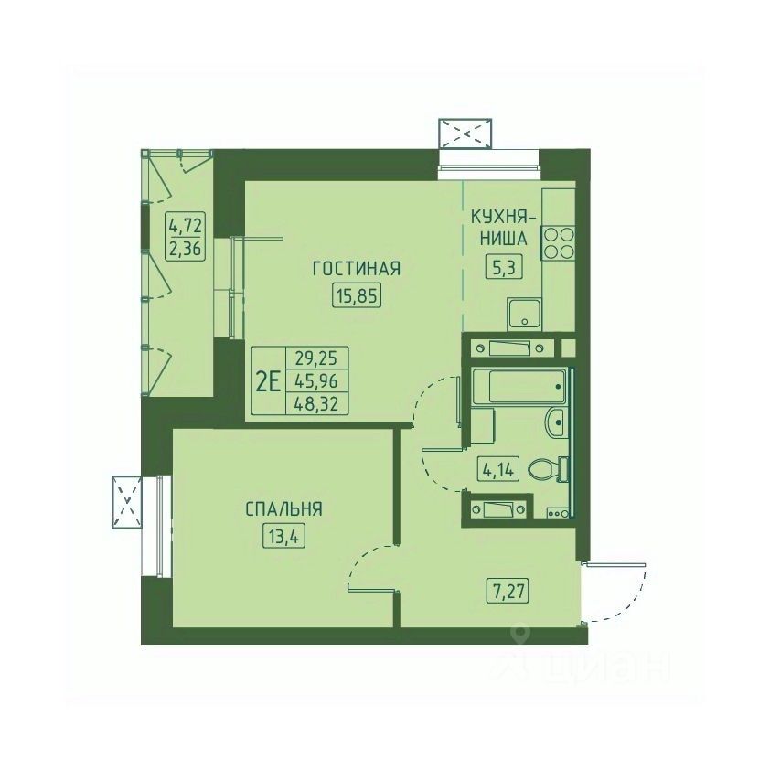 Общая площадь48,32 м2