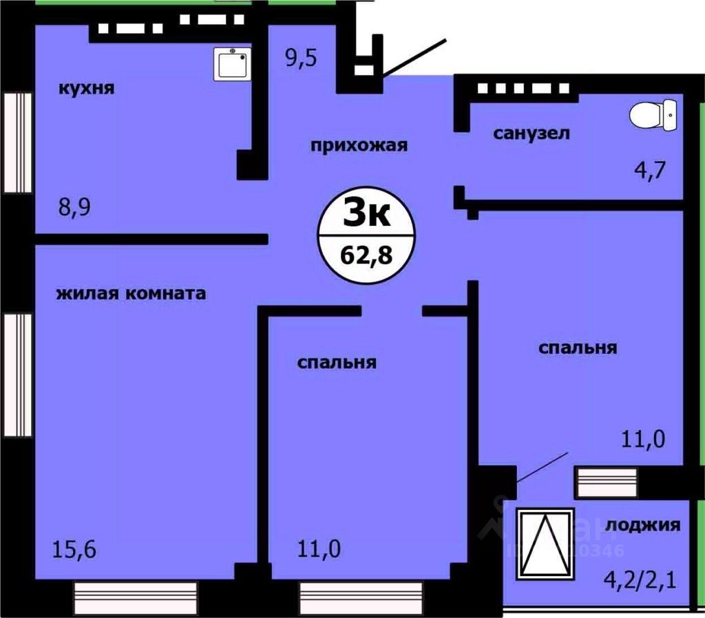 продам 3-к, Лесников, 2 стр.7 897 600 ₽