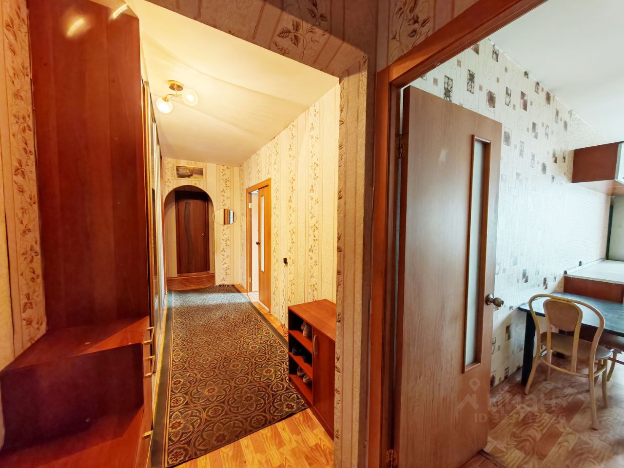 На кухне остается кухонный гарнитур, в коридоре встроенный шкаф-купе.