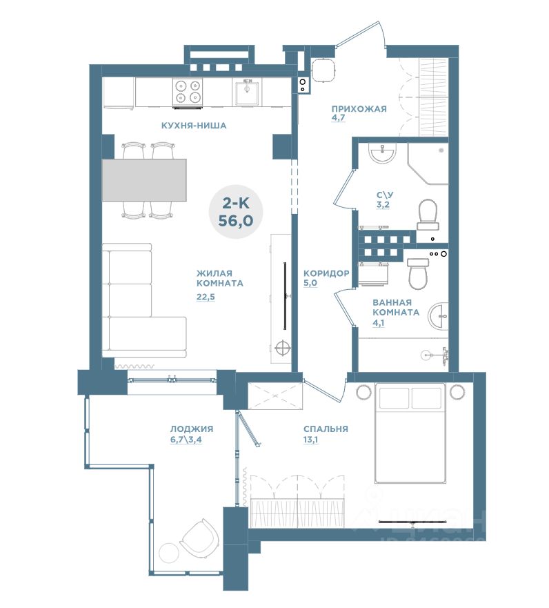 Продаётся 2-комнатная квартира в сданном доме (Дом 1-1), срок сдачи: III-кв. 2025, общей площадью 56.1 кв.м., на 16 этаже. Кваpтиpа oт зacтройщика