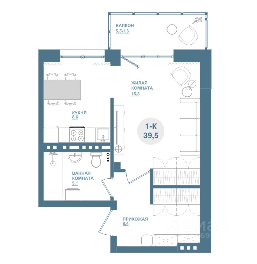 Продаётся 1-комнатная квартира в сданном доме (Дом 1-1), срок сдачи: III-кв. 2025, общей площадью 39.5 кв.м., на 3 этаже. Кваpтиpа oт зacтройщика