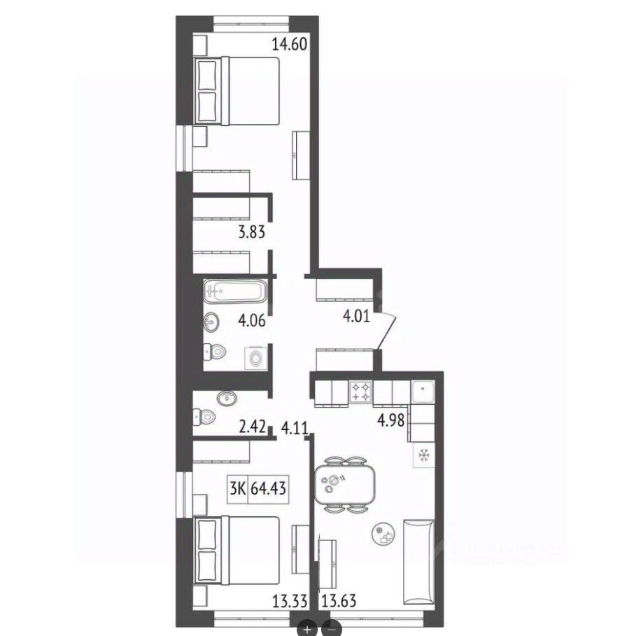 Продаётся 3-комнатная квартира в строящемся доме (Премьер парк), срок сдачи: III-кв. 2029, общей площадью 64.97 кв.м., на 9 этаже. Жилой комплекс ''Премьер Парк'' расположен в живописном микрорайоне Тихие Зори города Красноярска, неподалеку от реки Енисей и знаменитого железнодорожного моста, удостоенного гран-при наравне с Эйфелевой башней. Вблизи комплекса находятся такие достопримечательности, как фан-парк ''Бобровый Лог'', заповедник ''Столбы'' и река Базаиха с её живописной поймой. Чтобы провести время на природе понадобиться потратить всего несколько минут на дорогу.