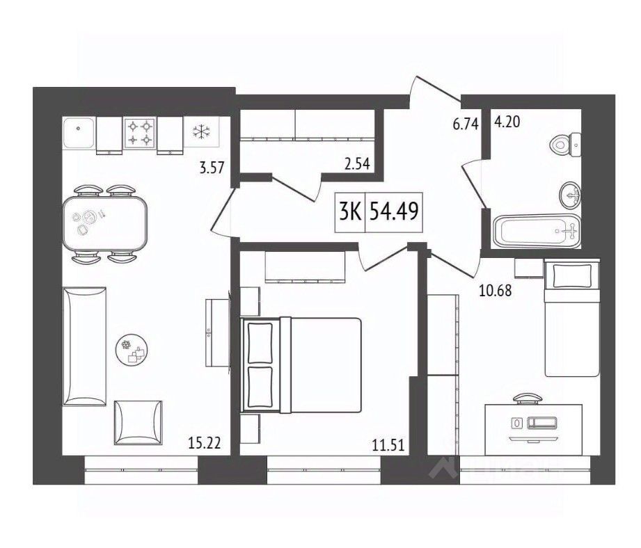 Продаётся 3-комнатная квартира в строящемся доме (Премьер парк), срок сдачи: III-кв. 2029, общей площадью 54.49 кв.м., на 3 этаже. Жилой комплекс ''Премьер Парк'' расположен в живописном микрорайоне Тихие Зори города Красноярска, неподалеку от реки Енисей и знаменитого железнодорожного моста, удостоенного гран-при наравне с Эйфелевой башней. Вблизи комплекса находятся такие достопримечательности, как фан-парк ''Бобровый Лог'', заповедник ''Столбы'' и река Базаиха с её живописной поймой. Чтобы провести время на природе понадобиться потратить всего несколько минут на дорогу.