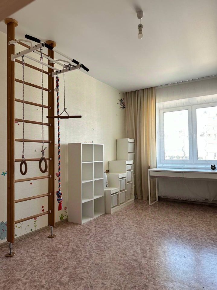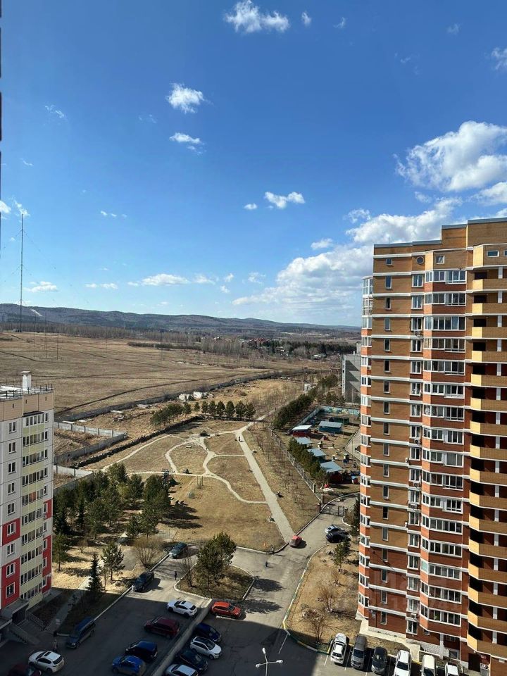 В продаже двухкомнатная квартира площадью 58 квадратных метров на 15 этаже кирпичного дома, расположенного в зеленом спальном районе города Красноярска.