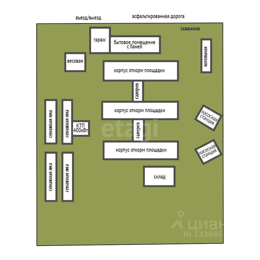 Продается действующая откормочная площадка для крупного рогатого скота в Рыбинском районе. Комплекс включает три современных откормочных цеха общей площадью 9660 кв. м, что позволяет одновременно содержать до 500 голов быков породы Герефорд. Инфраструктура предприятия полностью укомплектована для автономной и эффективной работы: собственная котельная на твердом топливе, водонасосная станция с артезианской скважиной, гараж на 72 кв. м для техники, баня 288 кв. м и вспомогательные промышленные помещения. Энергоснабжение объекта обеспечивается вводной мощностью 400 кВт. Ключевым активом является земельный участок площадью 15 га в собственности, а также право на использование дополнительных 500 га паевой земли для заготовки люцерны, что создает замкнутый цикл кормопроизводства и значительно снижает операционные расходы. Предприятие находится в рабочем состоянии, полностью укомплектовано и готово к продолжению хозяйственной деятельности без простоев. Сделка купли-продажи осуществляется без комиссионных выплат со стороны покупателя. Объект представляет интерес для инвесторов, планирующих расширение существующего агробизнеса или запуск нового рентабельного производства с моментальным выходом на операционную окупаемость. Код пользователя: 71114 Номер в базе: 9864643