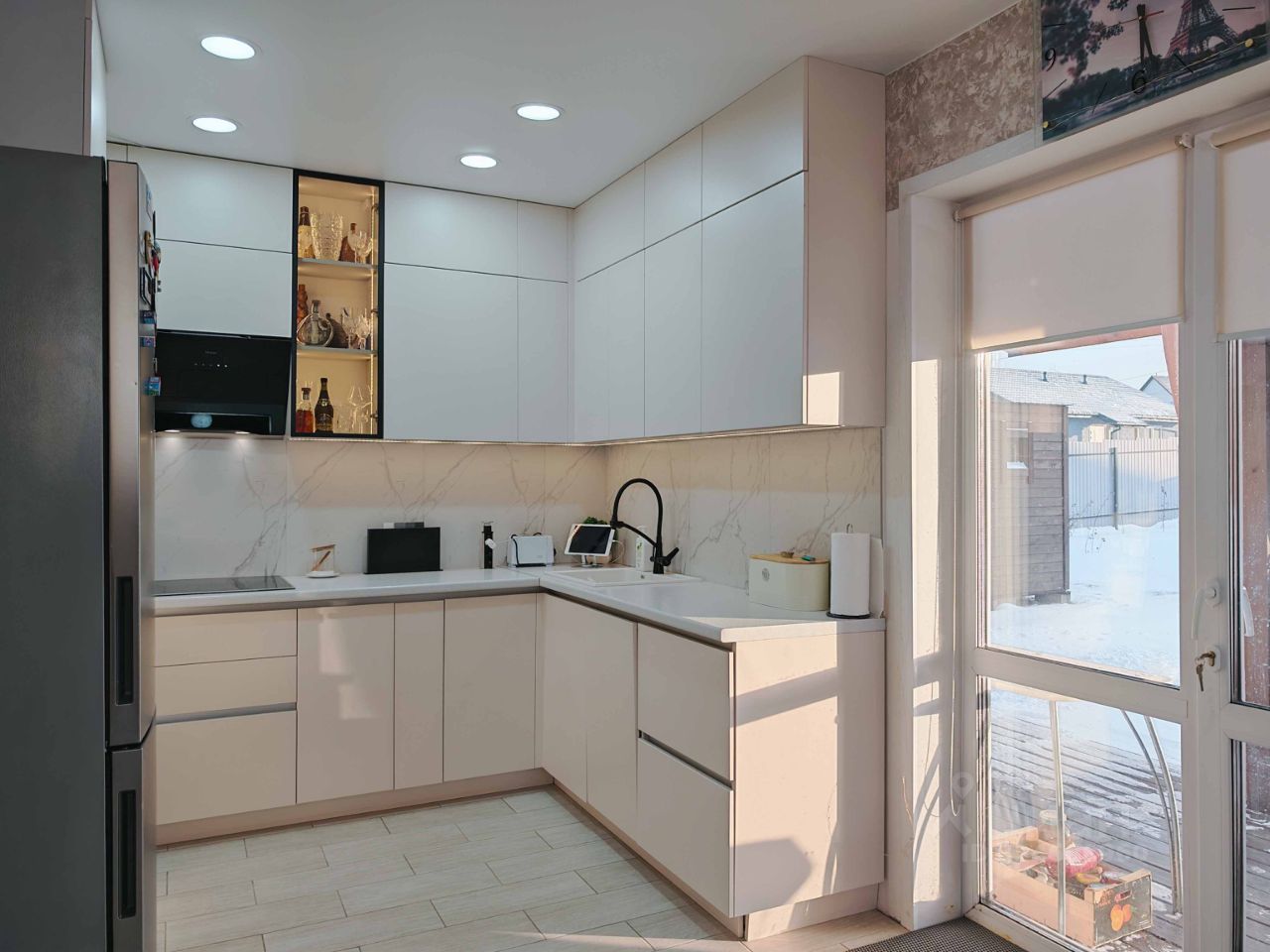 Состояние нового дома с современной отделкой (см. фото).