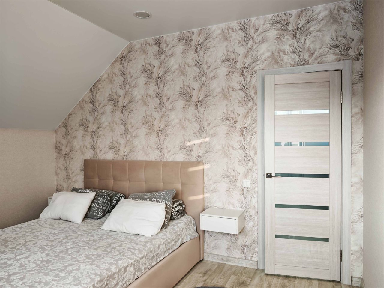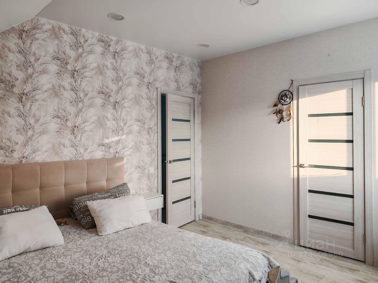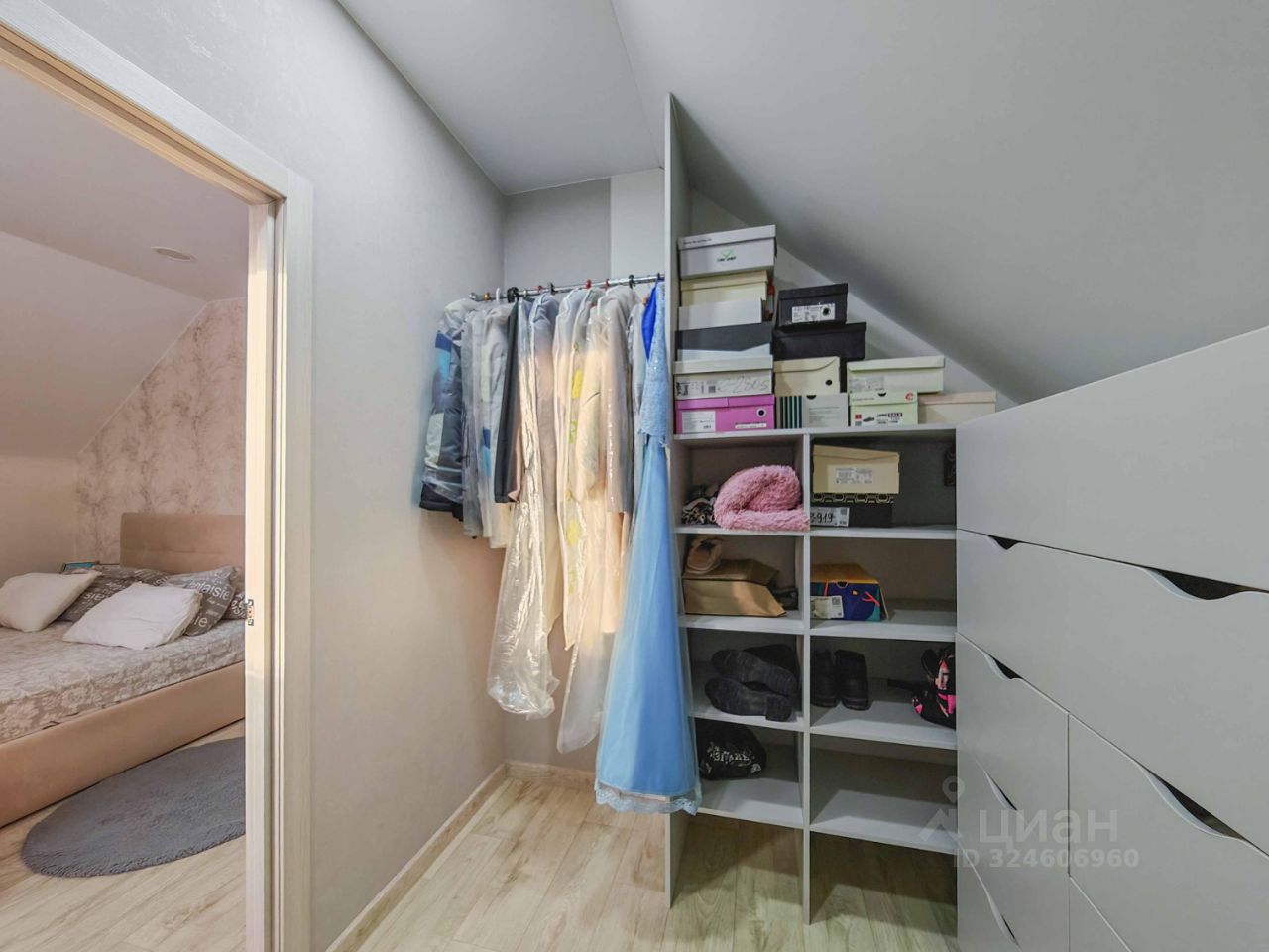 На втором: 2 отдельные комнаты, одна из которых со своей гардеробной, 2-й сан. узел.