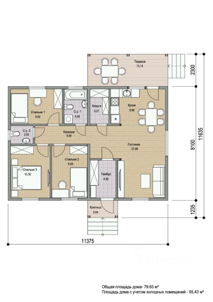 Общая площадь95,43 м2