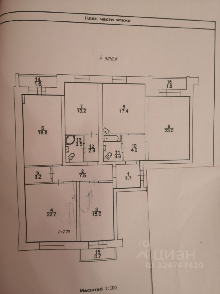 Просторная и светлая 5-комнатная квартира площадью 141.7 кв.м. на 4 этаже 6-и этажного дома. Дом из красного кирпича, в подъезде по две квартиры на этаже. Ввод в эксплуатацию 2005. Общая площадь 141,7, жилая 93.5 кв.м.