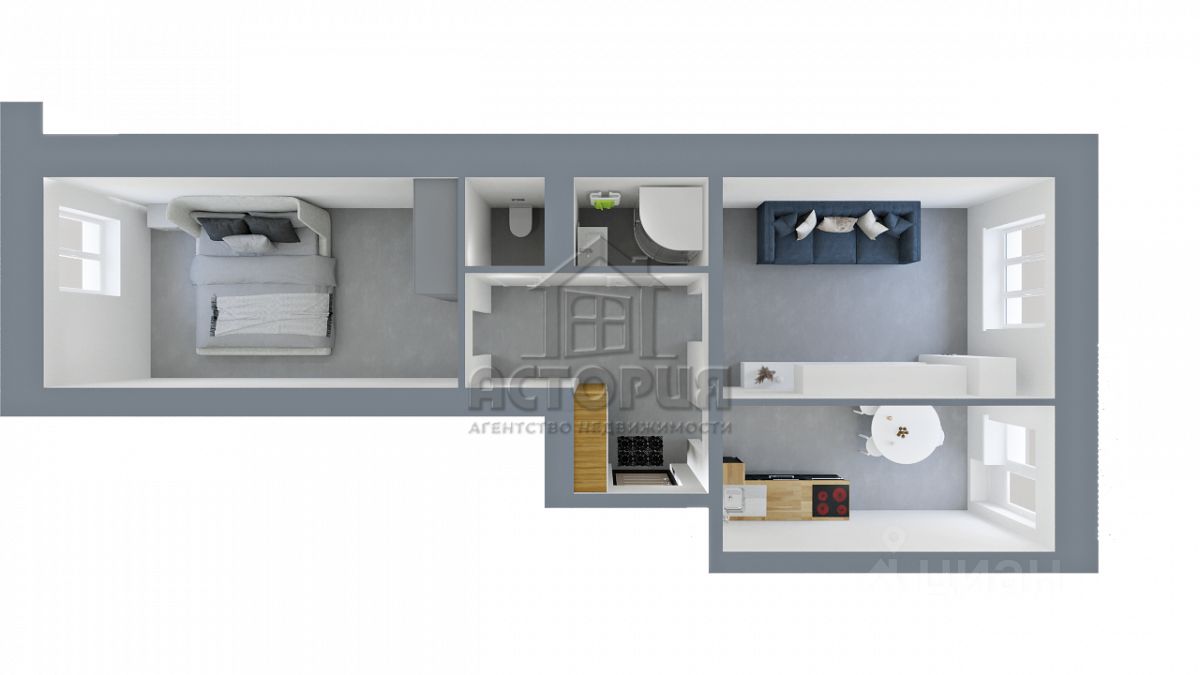Квартира с изолированной планировкой включает в себя две комнаты и функциональную кухню площадью 9 кв.м., что идеально подходит как для семейных обедов, так и для встреч с друзьями. Высота потолков 2.7 м создает ощущение простора и света. Благодаря застекленной лоджии у вас всегда будет место для уютного отдыха с видом на улицу и во двор.