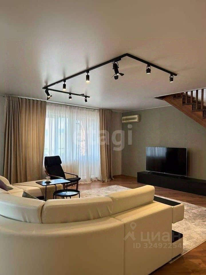 Продам шикарную двухуровневую квартиру. Просторная, светлая. В квартире выполнен современный ремонт, с/у в кафеле с новой сантехникой. Планировка квартиры современна и эргономична, на первом этаже расположена кухня-столовая + гостиная 65 м кв., спальня, сан узел. На втором этаже расположены 2 спальни + мастер спальня, большой холл, сан узел. Лестница из лиственницы - текстурированная, все двери деревянные. В ремонте использованы только качественные материалы. В квартире 3 кондиционера, кухня оборудована встроенной техникой. Предусмотрены большие системы хранения на 1 и 2м этаже. Так же есть системы хранения на лоджиях. Красивый вид из окна. На втором этаже большие мансардные окна, деревянные жалюзи.