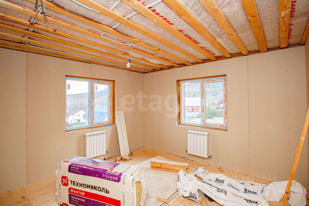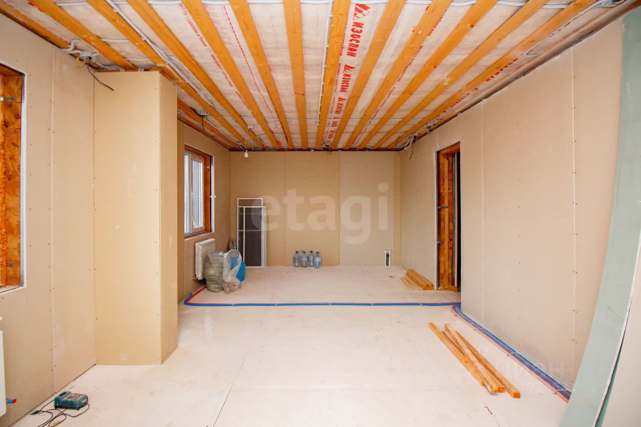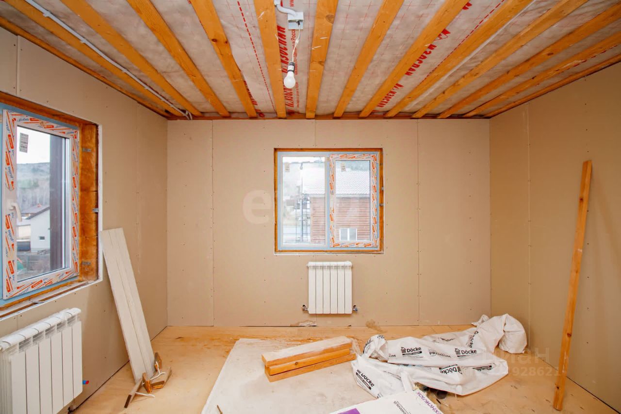 Стены в доме обшиты гипсокартоном в 2 слоя. Осталось только залить пол на первом этаже и выполнить чистовые работы. В это время уже можно заказать мебель и заехать спустя всего пару месяцев.