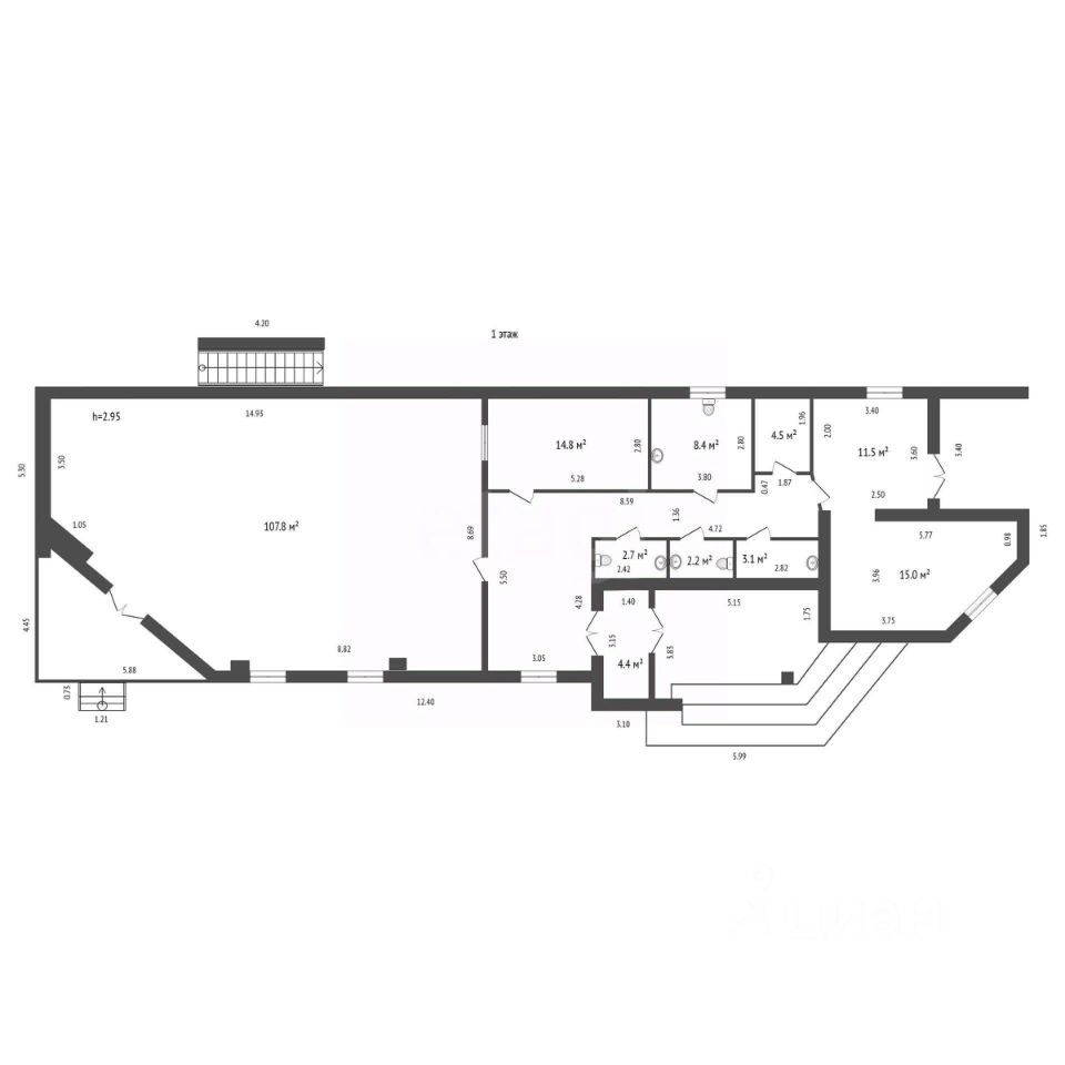 Продам помещение свободного назначения, расположенное в одноэтажном здании в непосредственной близости к жилому дому. Общая площадь 200м2. 2 отдельных входа со стороны улицы. Оборудовано несколько мокрых точек. Высота потолков 3 м. Мощность 15 кВт. Автономное отопление. Без ремонта. Документы в порядке.