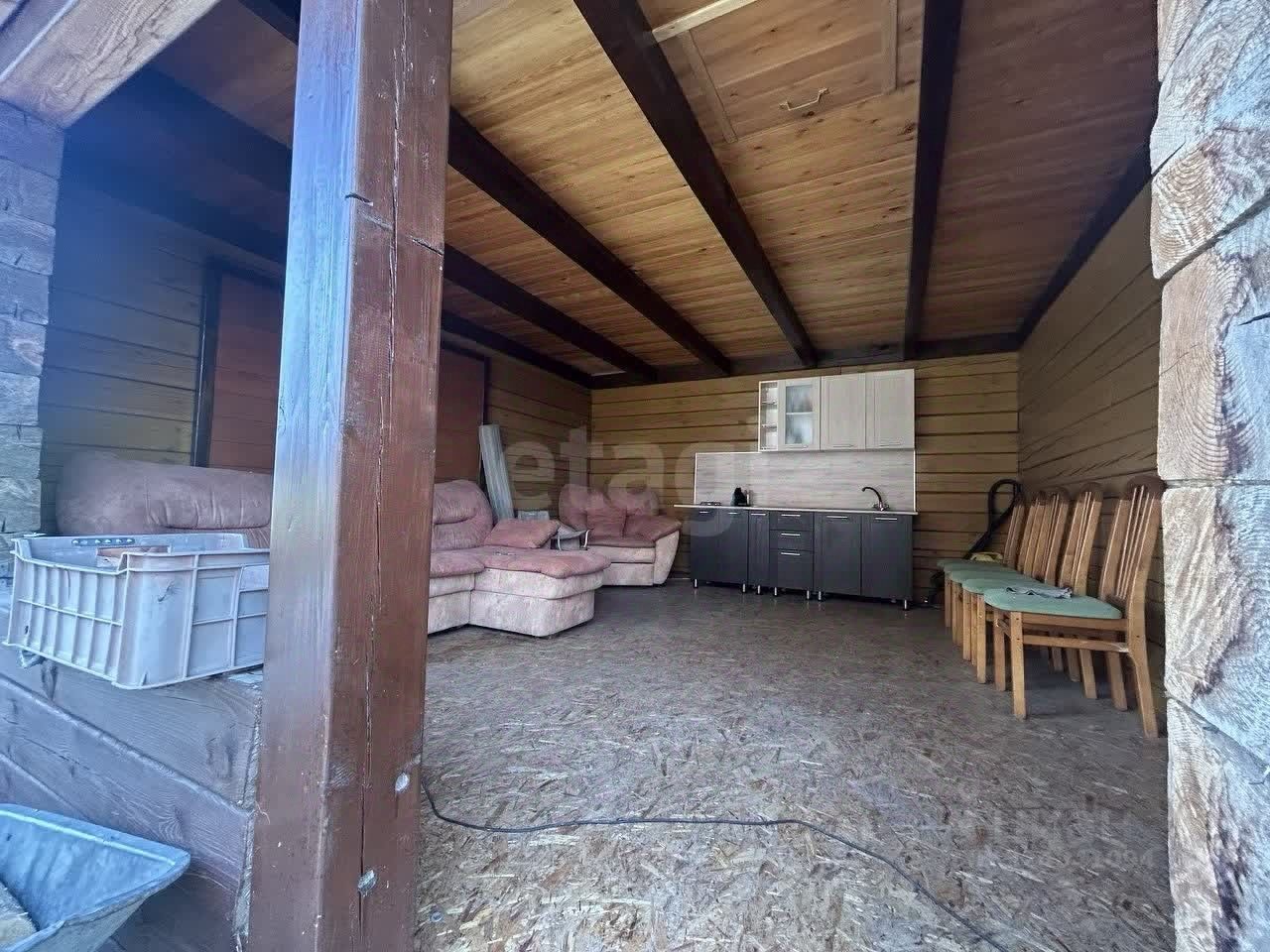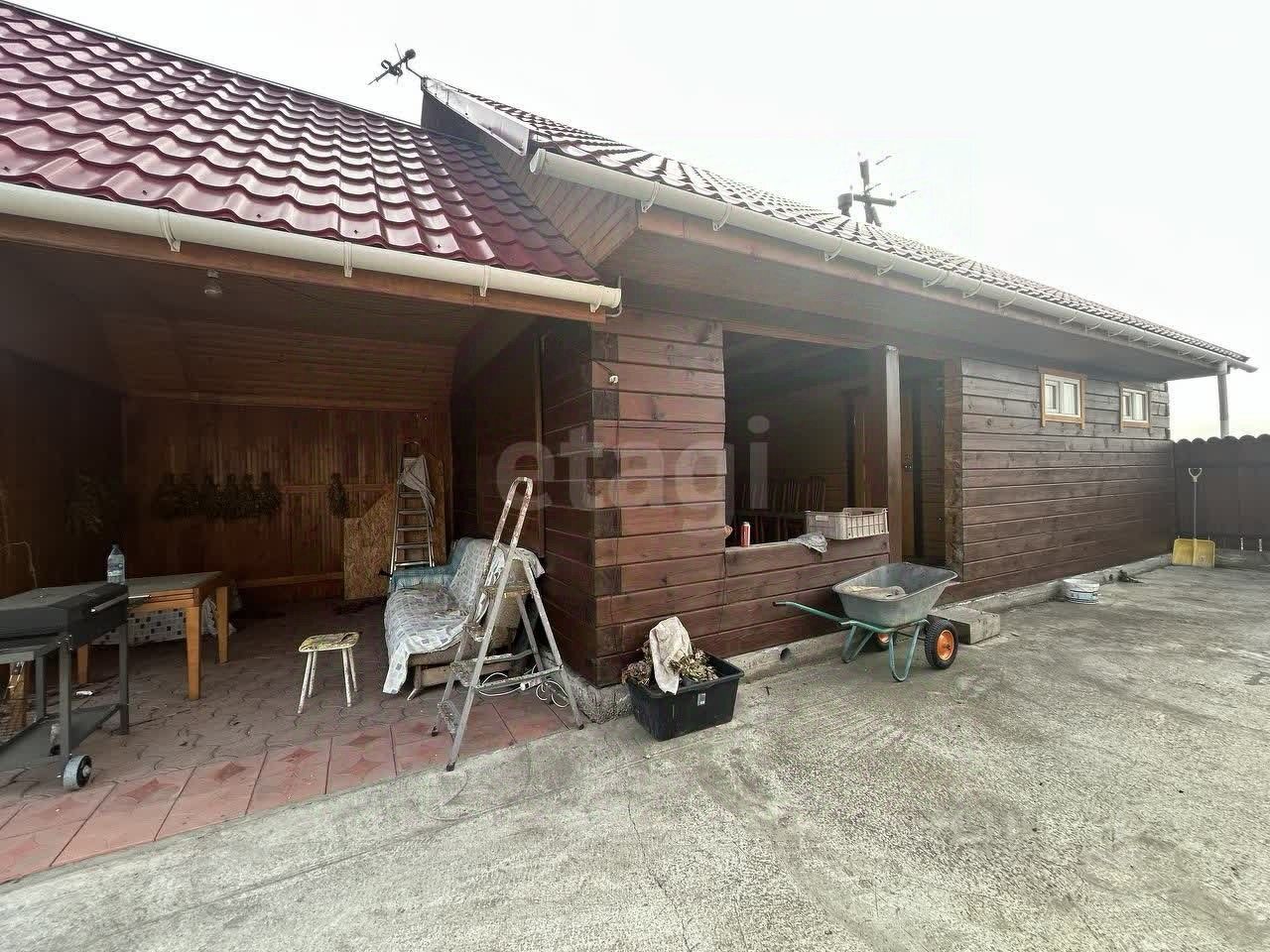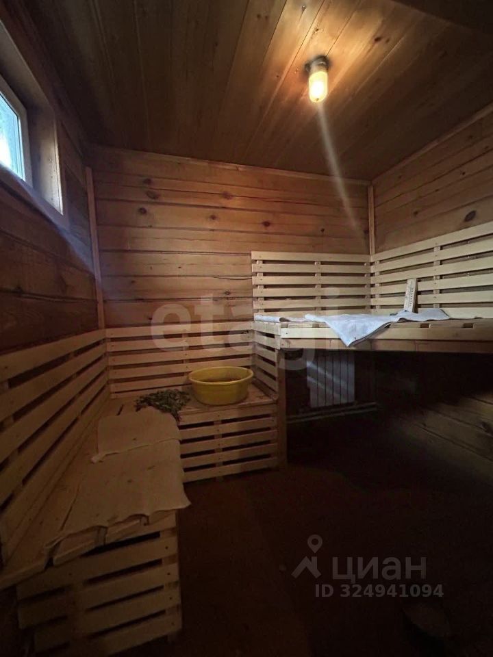 На территории расположен комплекс для отдыха. Строение из бруса включает в себя мангальную зону, летнюю кухню с горячей и холодной водой, великолепную баню. В бане три комнаты: парилка, моечная и огромная комната отдыха. Все помещения под одной крышей. Септик, скважина и электричество заведены в дом и баню, всегда есть холодная и горячая вода. Новый асфальт до самых ворот. Дом очень уютный и ухоженный, здесь все продумано до мелочей.