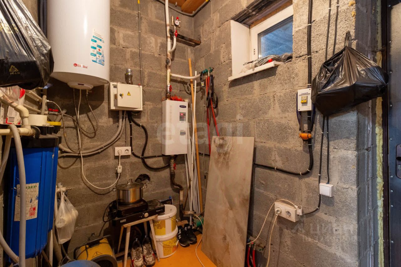 Лестница деревянная сосна, полы с подогревом. Есть техническая комната, где расположен электро котел, твердотопливный котел, водонагреватель, фильтры для воды. Вода, отопление, электричество все заведено в дом.