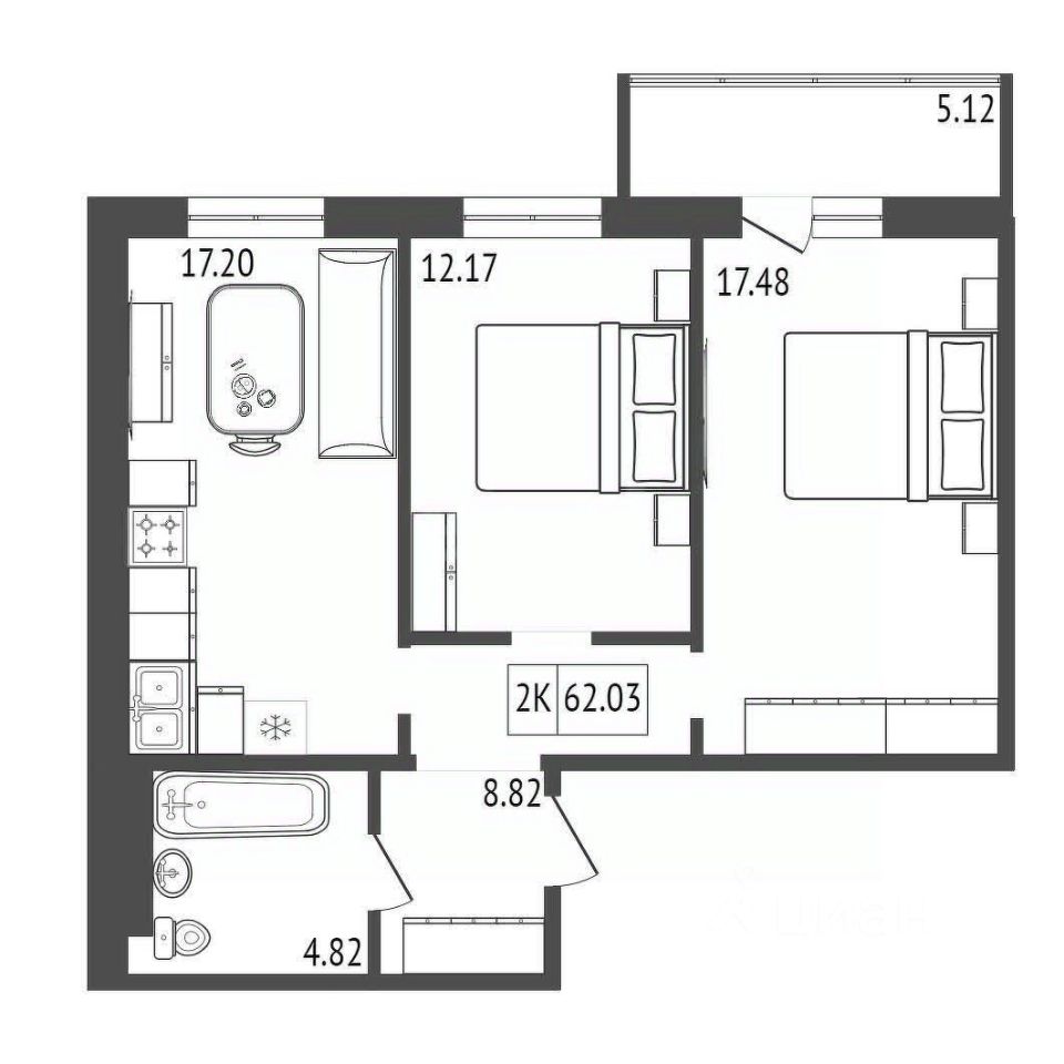 Двухкомнатная квартира в новом доме жилого комплекса ''Аринский'' предлагает оптимальную классическую планировку с изолированными комнатами, обеспечивающую комфорт для семьи. Объект сдается с предчистовой отделкой, что позволяет будущим владельцам сразу приступить к финишным работам и создать интерьер по своему вкусу.