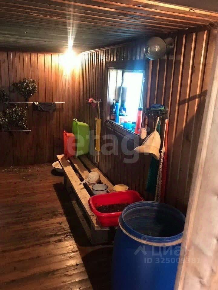 На территории расположены баня 50 м² с парилкой, комнатой отдыха и мойкой, а также летняя кухня. Чердачное помещение бани подходит для хранения. Гараж на 28 м² оборудован смотровой ямой и погребом, рядом — пять парковочных мест. Для хранения дров предусмотрен крытый дровник на 20 м². Участок украшают два цветника с розами, лилиями, пионами и гортензиями, есть две теплицы закрытого и открытого типа.