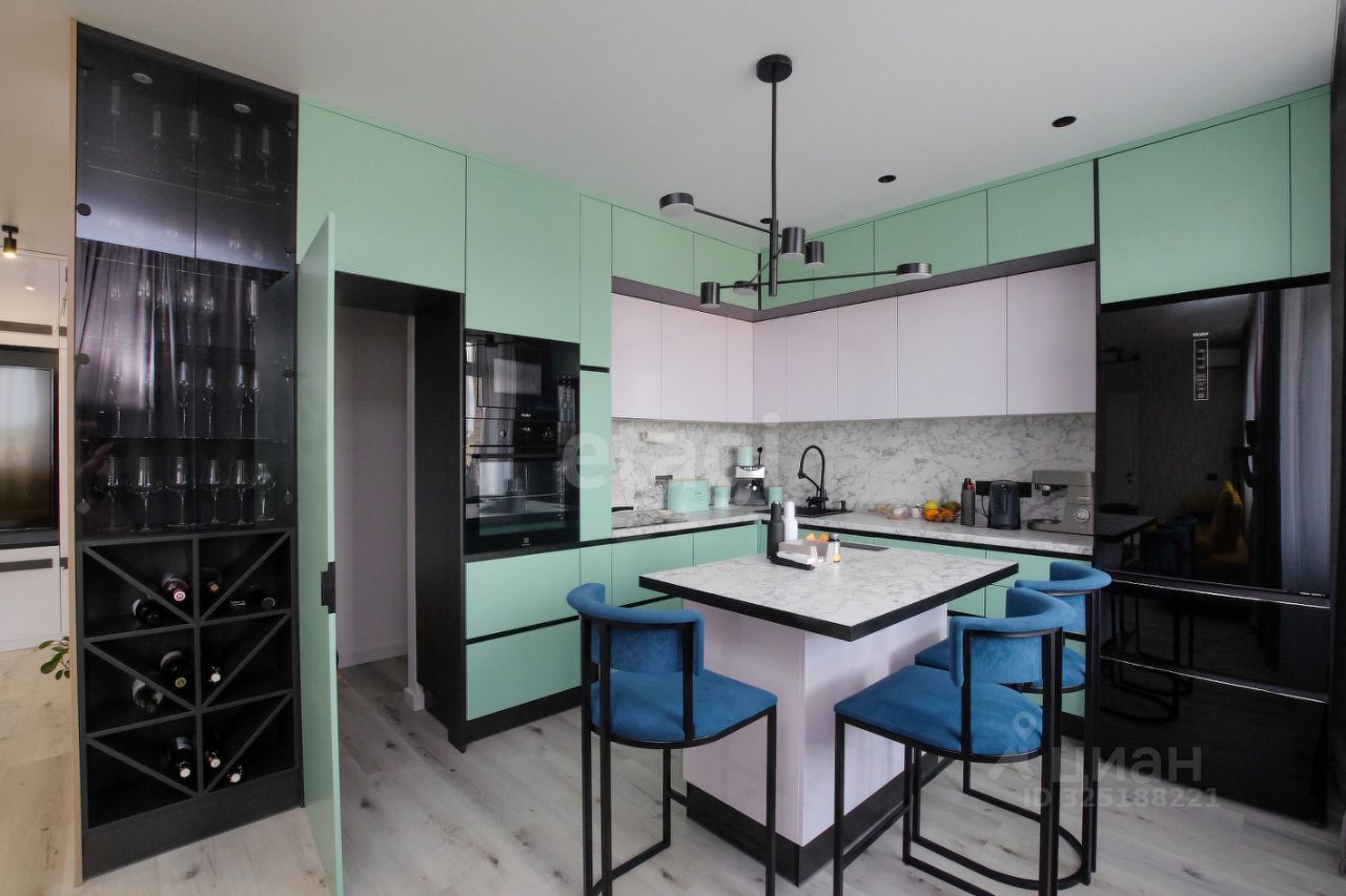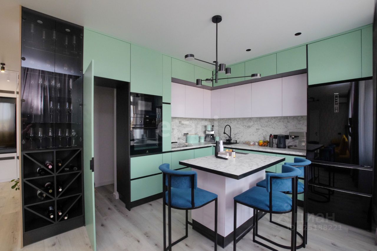 Просторная и функциональная квартира, в которой каждая деталь продумана для комфортной жизни. Ремонт выполнен с применением качественных материалов, вся мебель изготовлена на заказ с учетом эргономики и потребностей в хранении. Ключевая особенность — умная планировка: на кухне оборудован удобный остров вместо традиционного стола и встроена кладовая для второй холодильник и запасов. Журнальный столик в гостиной трансформируется в большой обеденный для приема гостей. Установлен измельчитель бытовых отходов. В гостиной также расположен камин на биотопливе. Во всех комнатах, включая детскую и спальню с гардеробной, установлены кондиционеры. Для хранения вещей предусмотрены многочисленные шкафы и системы хранения, включая отдельный шкаф для стиральной и сушильной машин в коридоре.