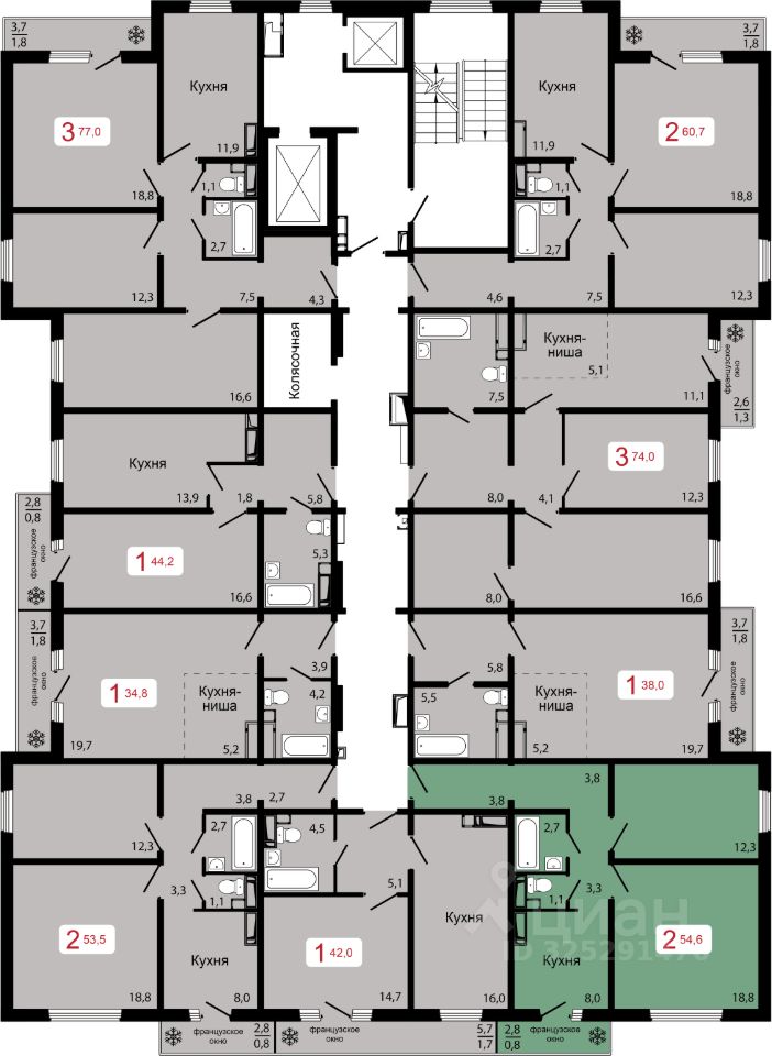 Продаётся 2-комнатная квартира в строящемся доме (Дом 3), срок сдачи: II-кв. 2027, общей площадью 54.6 кв.м., на 8 этаже.
