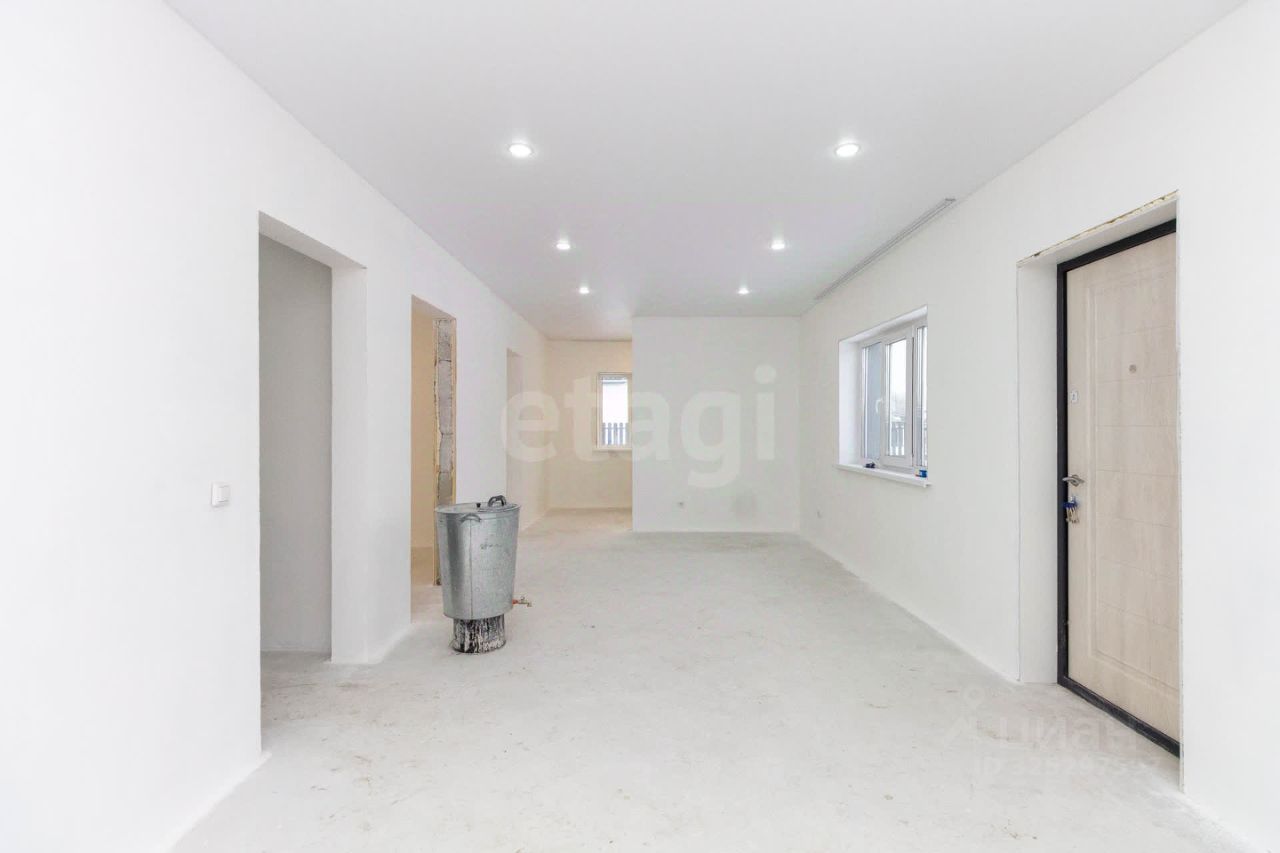 Дом расположен в деревне Ермолаева на территории ДНТ ''Большая Поляна'', в 15 км от городской черты, что обеспечивает баланс уединенности и доступности. В шаговой доступности находится поселок с полной социальной инфраструктурой: школа, аптеки и магазины решают все бытовые вопросы. Объект новый, построен из газоблока на утепленном ленточном фундаменте, что гарантирует высокую энергоэффективность и низкие эксплуатационные расходы, дом действительно сохраняет тепло в любое время года. Во всех помещениях смонтирована система водяного теплого пола, подведены холодная вода и канализация. Практичный фасад отделан металлическим сайдингом под белёный дуб, не требующим сложного ухода. Ключевая особенность — две просторные террасы по 12 кв.
