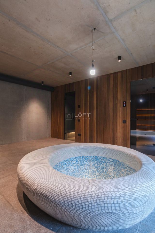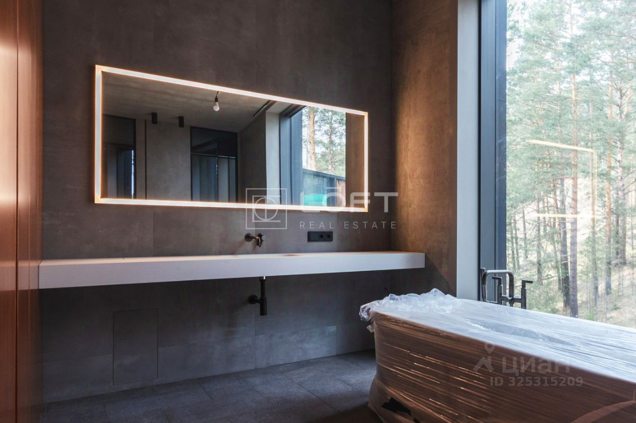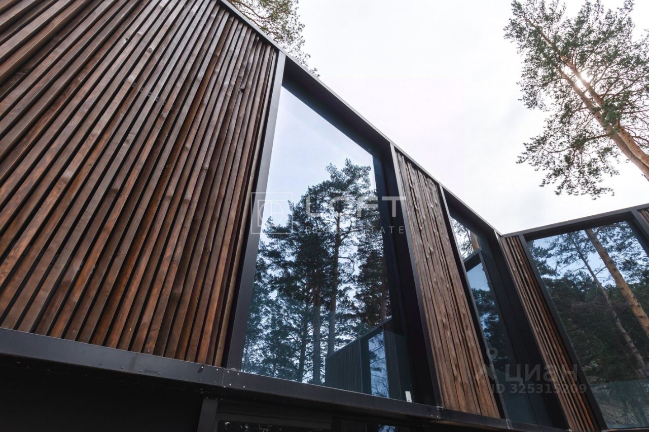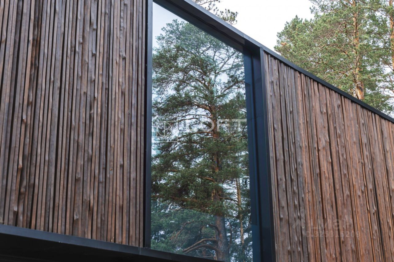 При строительстве были использованы премиальные строительные материалы, панорамное безрамное остекление, сантехника от европейских брендов, напольное покрытие - инженерная доска, керамогранит, стены деревянные панели, полированный бетон.